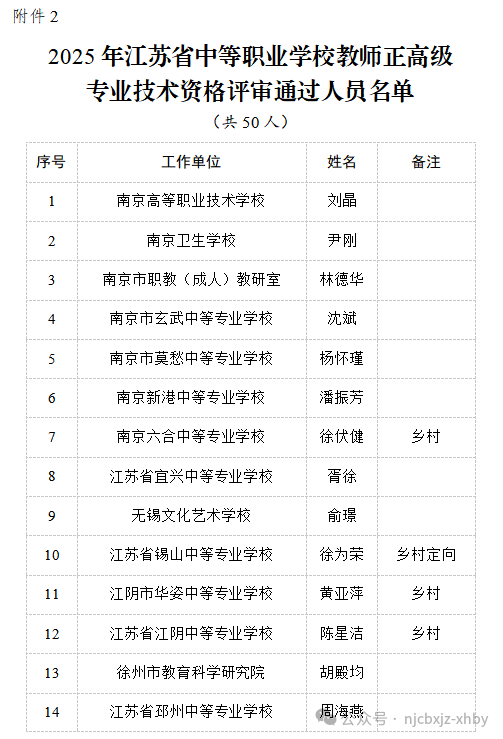 2025年江苏省中等职业学校教师正高级专业技术资格评审通过人员名单具体如下: