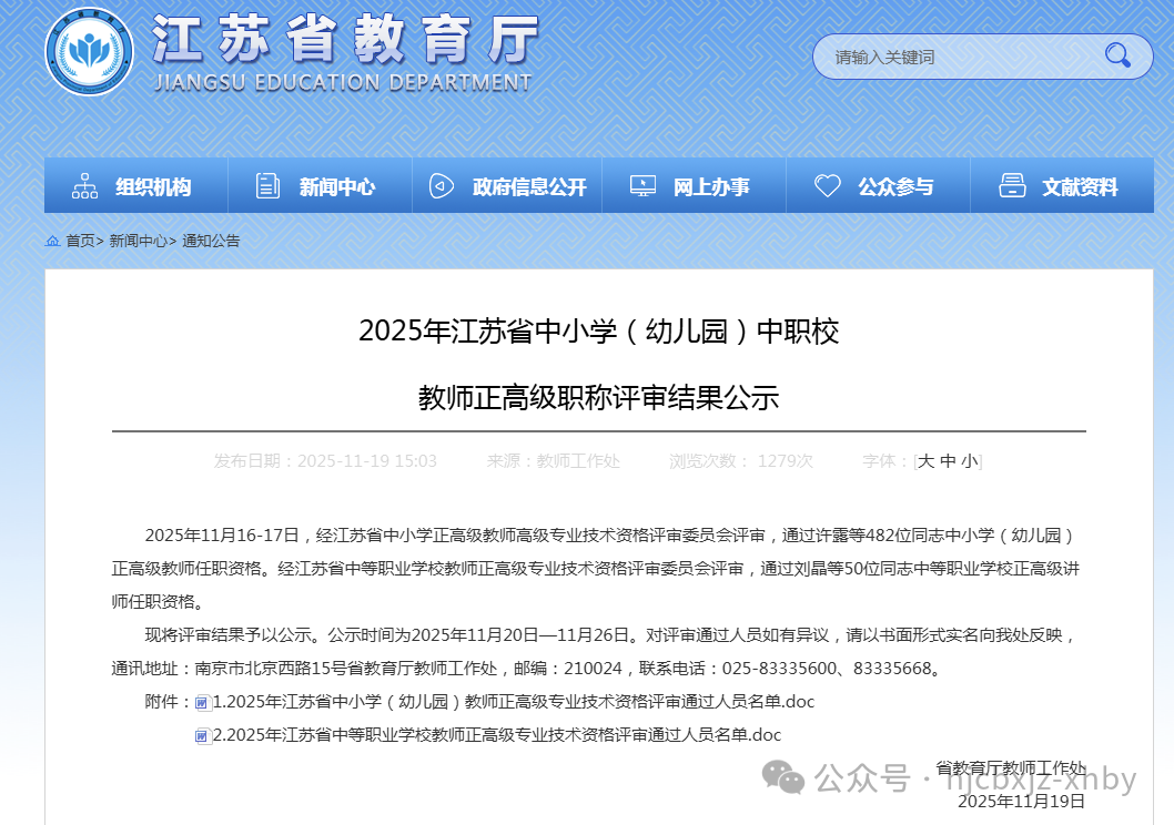 近日,江苏省教育厅发布《2025年江苏省中小学(幼儿园)中职校 教师正高级职称评审结果公示》,看看有没有你认识的老师。