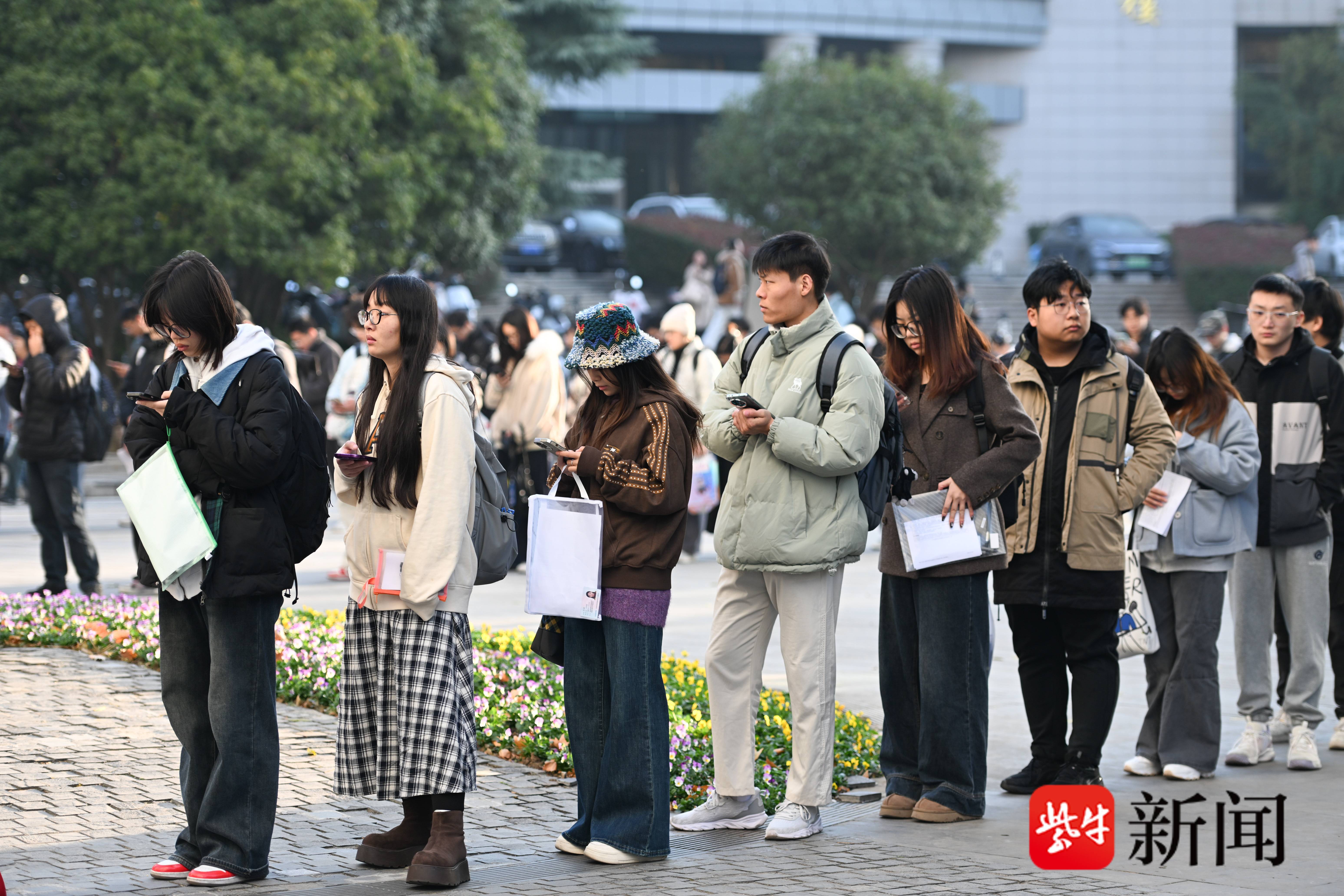上午8:30,在南京林业大学考点,考生们抱着笔记,进行着进场前的查漏补缺。“选择体制内是我和父母共同商量的结果,我的本硕都是学生干部,所以通过公务员考录进入体制内,可以更好的发挥我的个人专长。”南京航空航天大学经管院的考生朱同学说。有着类似想法的还有金陵科技学院的应届生小许。小许表示,自己为了复习公务员考试准备了整整四年。“从大一进校开始就在准备考公了!我的基础没有其他同学那么好,但我相信勤能补拙。读个研未来还是要工作,还不如现在就直接走向就业市场。”