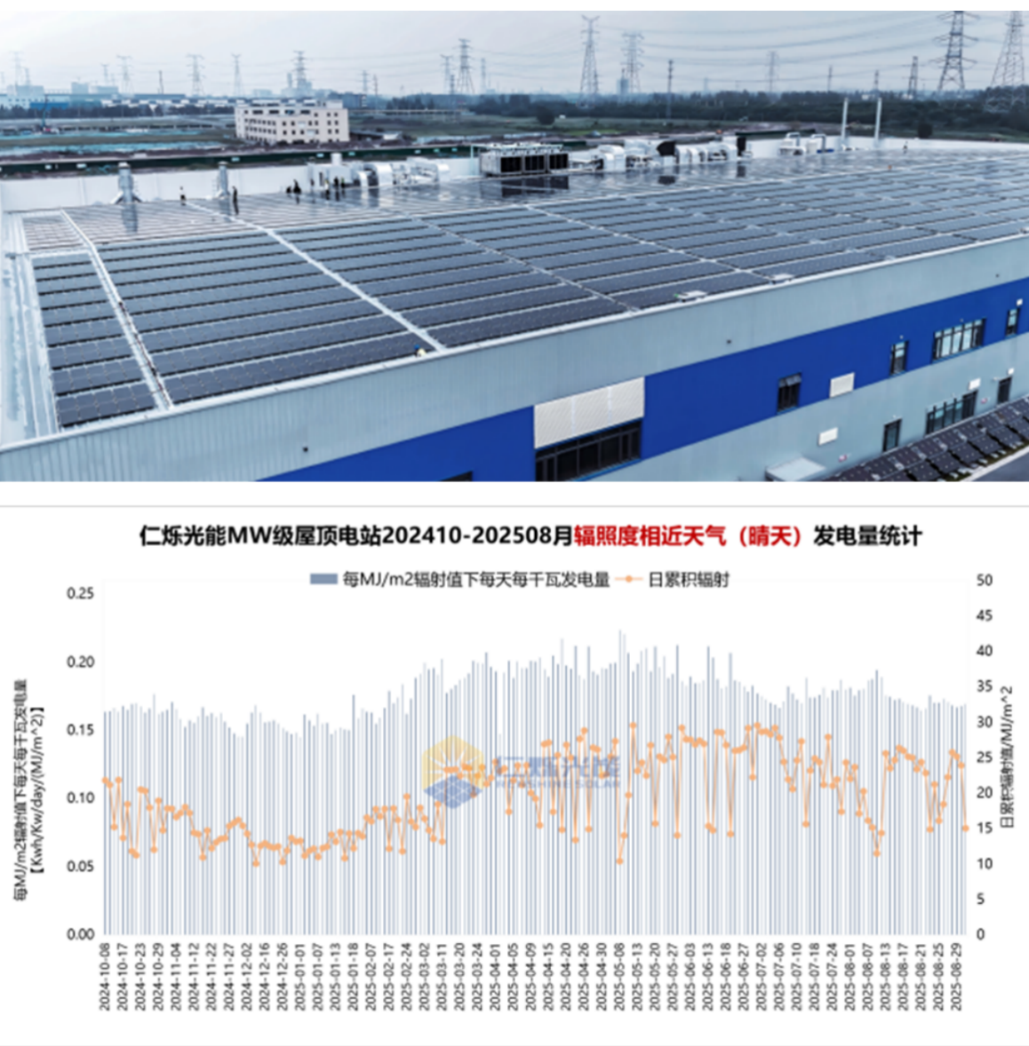 仁烁光能MW级钙钛矿组件示范项目及组件发电量同辐照关系