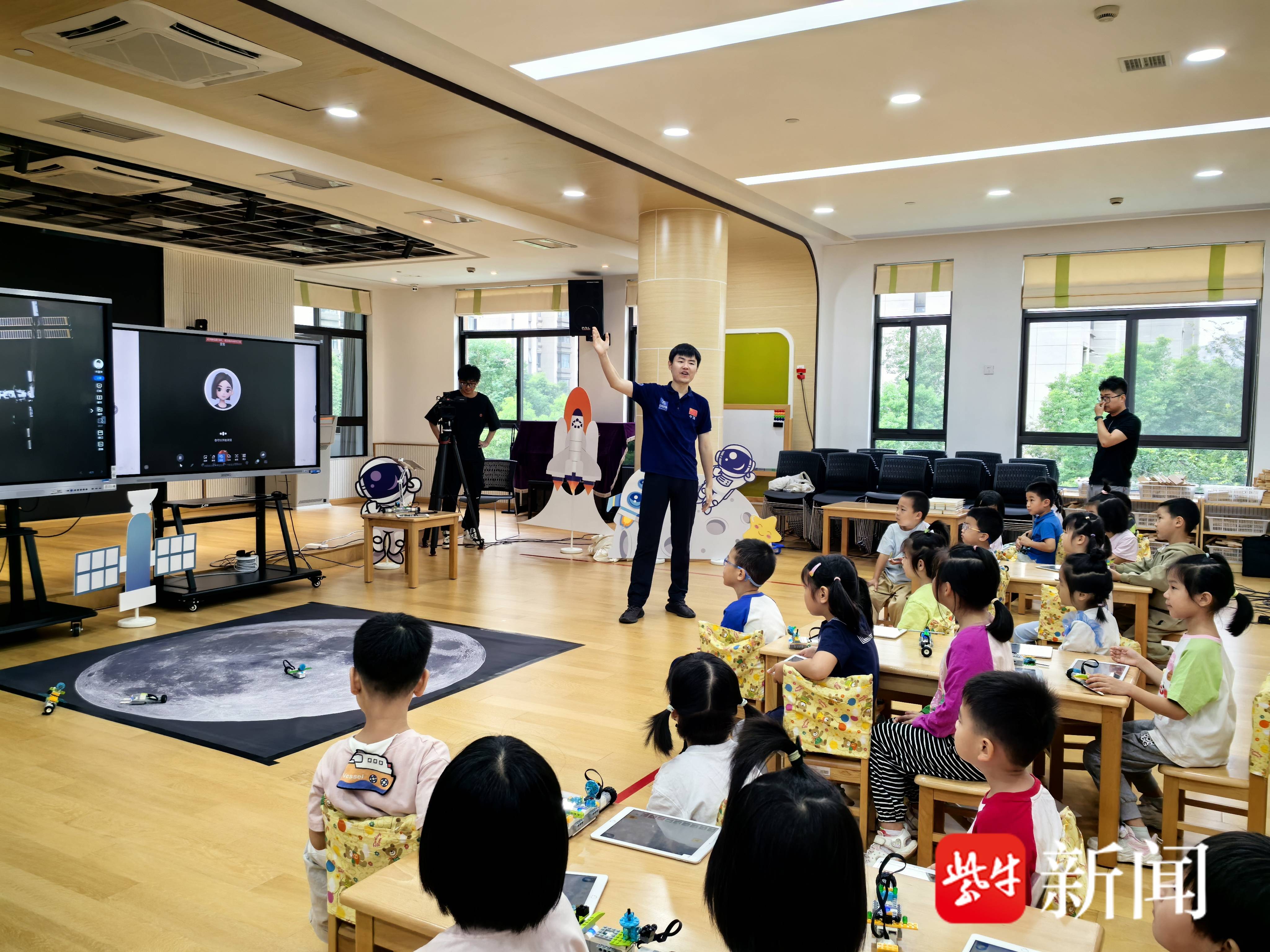 “太空里有星球”“太空里可能有外星人”“外太空还有许多的人造卫星”……听到孩子对太空的讨论,许晓明利用AR技术将卫星“请”进课堂。在他的引导下,孩子们用积木建造了各种卫星,最后通过图形化编程让卫星自主运作。“当我看到孩子们的卫星成功飞向月球时,我不由地感叹‘咱班娃可真牛’!”许晓明表示这次尝试,更让他坚定了人工智能的启蒙教育。