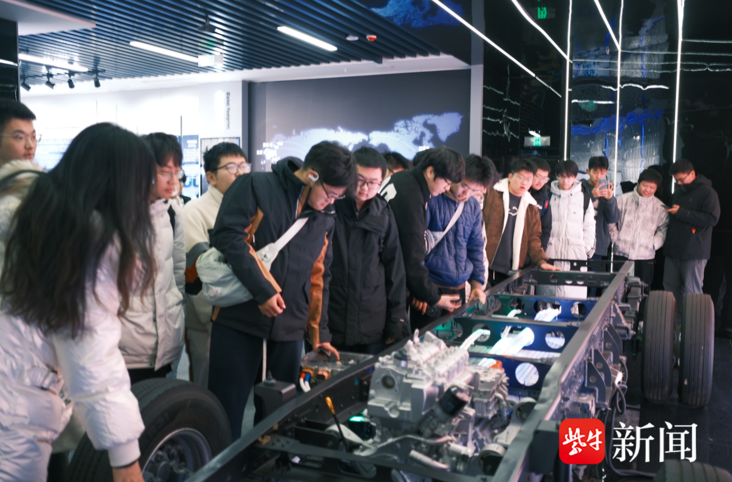 在比亚迪企业展厅,同学们系统了解了企业从电池技术起步,到逐步成长为新能源汽车全球领导者的跨越历程。刀片电池、DM-i超级混动系统等核心技术的实体展示,以及凝聚了数万项专利的“专利墙”,感受了比亚迪“技术为王、创新为本”的发展理念。同学们在近距离感受前沿科技的过程中,对创新驱动发展的时代内涵有了更深切的体悟。