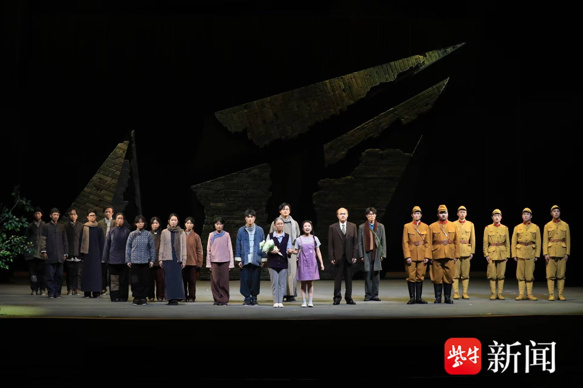 全场观众观看馆校协同“思政课”话剧《生命》首演。这部作品以1937年侵华日军南京大屠杀史实为历史背景,通过少年望中与妹妹望华在南京沦陷后的生死经历、国际友人拉贝的人道主义救援,以及当下幸存者跨越时空的记忆传承,展现绝境中人性的光辉与生命的坚韧,传递铭记历史、珍爱和平的核心主题。
