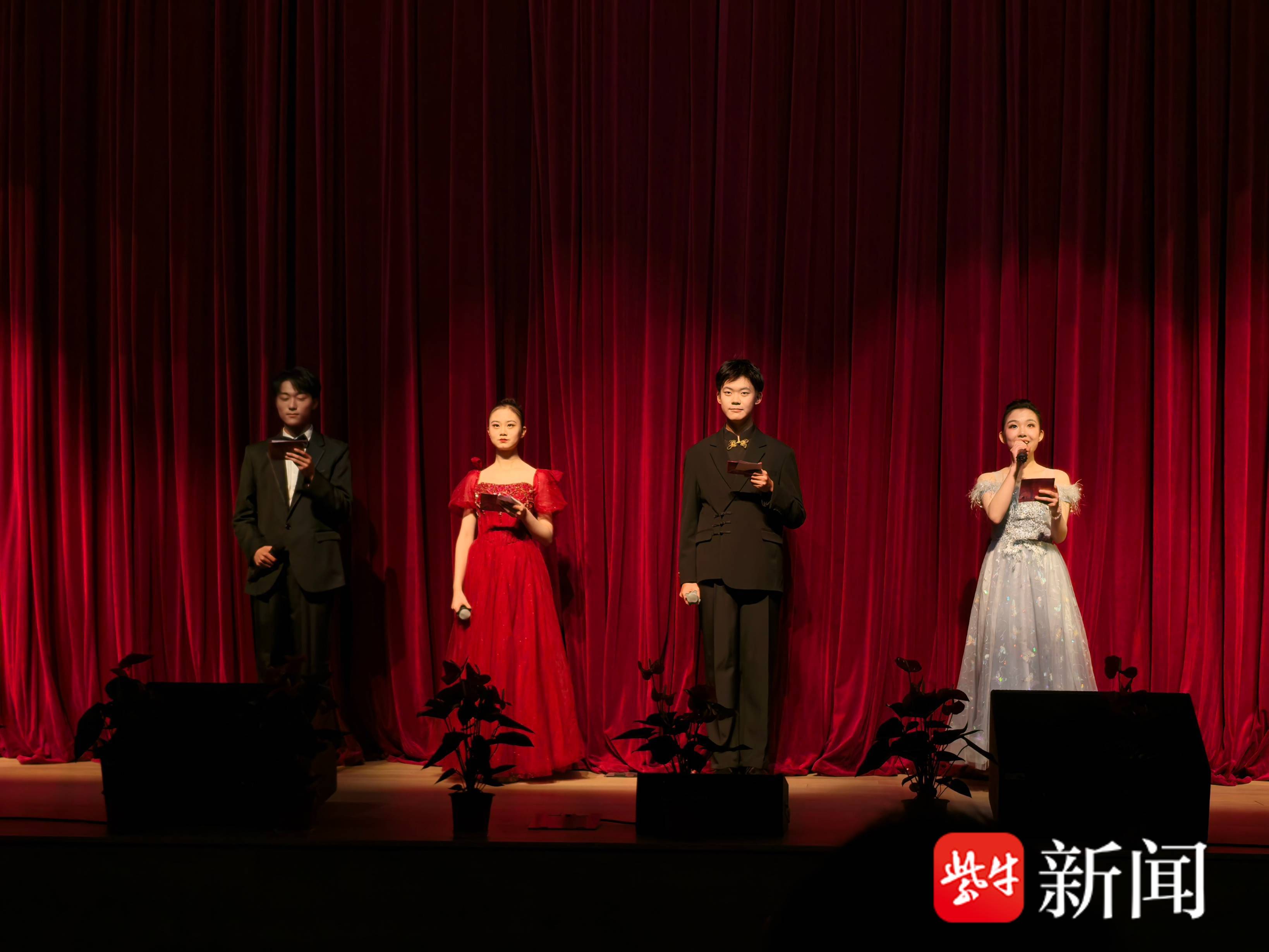 联欢会尾声,舞蹈《青苹果乐园》的音乐响起,“神秘嘉宾”跃上舞台。他们舞姿虽不专业,却充满热情与感染力,瞬间引发全场欢呼。南京市金陵中学党委书记孙小红告诉记者,每一年,金陵中学都会在年末开展丰富的活动,今年学校在新街口校区开展了新年音乐会,江心洲校区开展的是迎新联欢会。