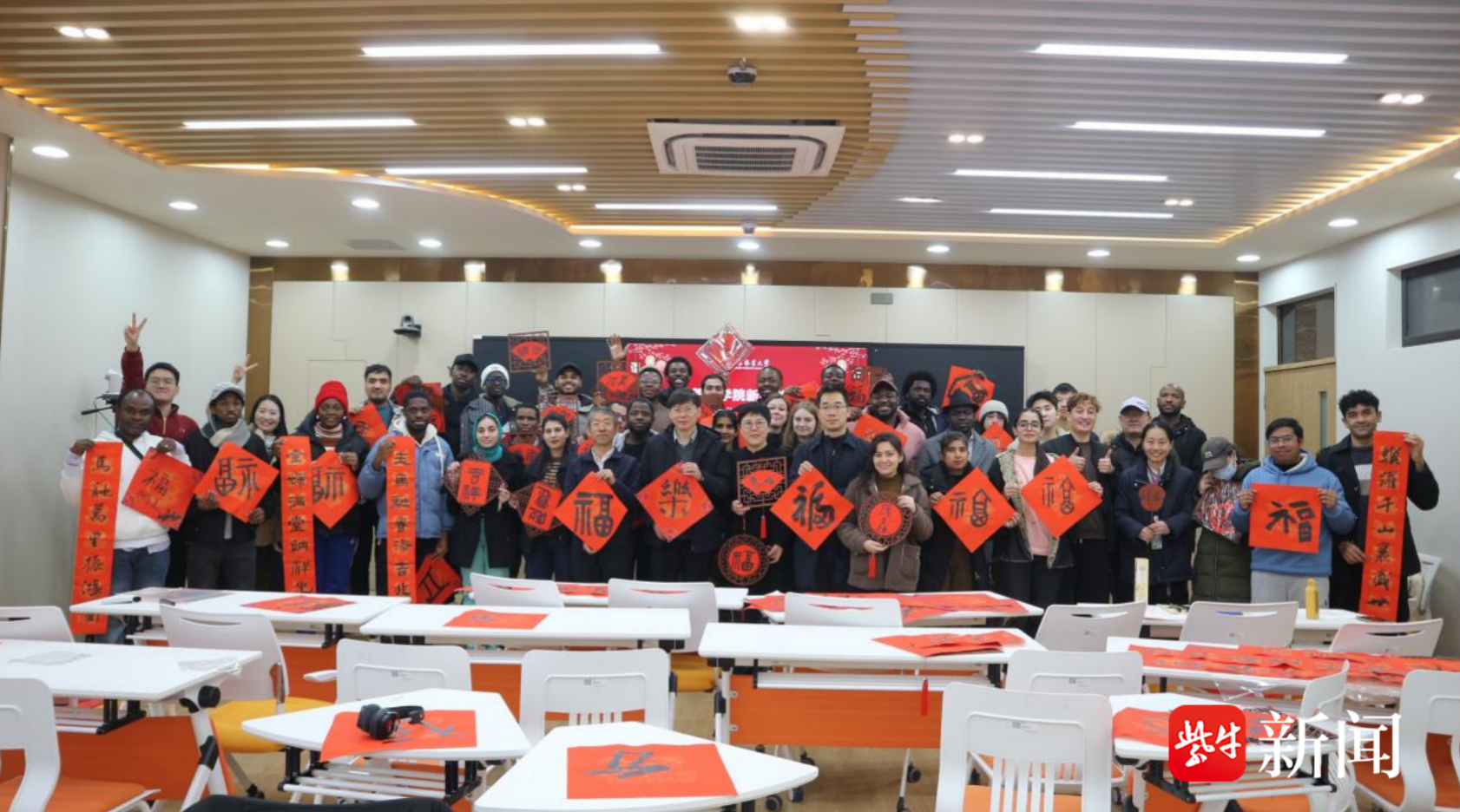 活动特邀该校轻工与食品学院原党委书记、书法家吴勇,与《南京林业大学学报(人文社会科学版)》专职主编、书法家朱凯现场教学,为留学生们讲解春节贴“福”字、写春联的传统习俗,并铺纸挥毫,书写充满祝福的新春对联。从“福”字倒贴寓意“福到”,到春联对仗中的吉祥文化,留学生们听得入神,不时发出赞叹。