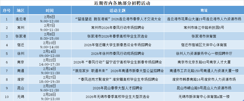 除线上招聘会外,江苏省内各地也同步组织了一系列线下招聘活动,为毕业生提供就近、多样的求职选择,进一步拓宽就业渠道。