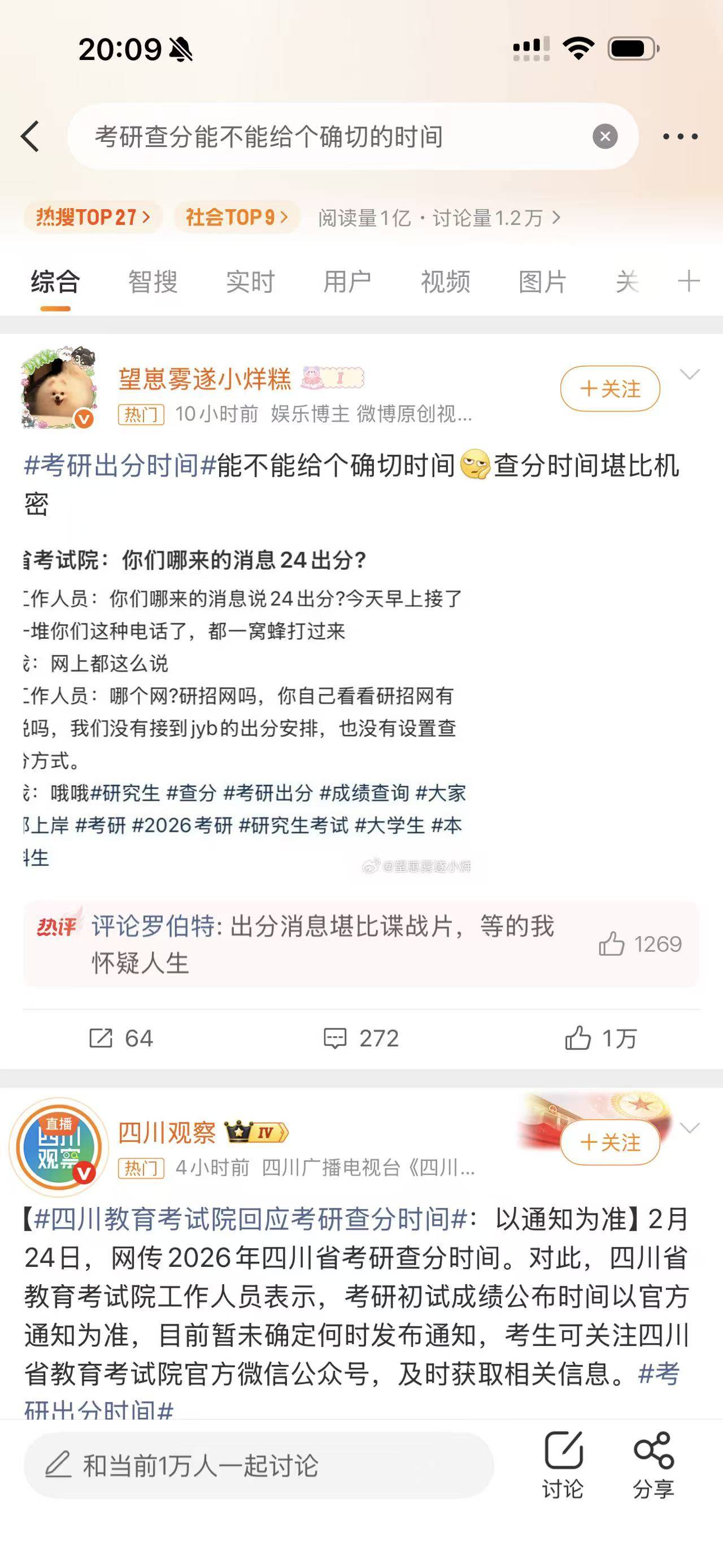 “能不能给个确切时间?查分时间堪比机密!”2月24日是新年复工首日,对于数百万参加了2026年全国硕士研究生招生考试的学子来说,心情却格外忐忑。此前,全国多所高校曾先后发布预告,将在2月24日公布考研成绩,但当24日真正到来时,守在电脑前的考生们反复刷新着研招网和各校官网,却迟迟未能等来成绩。