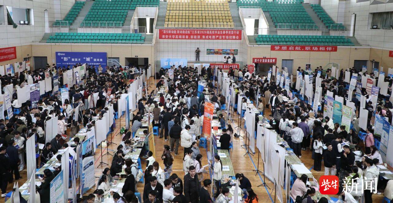 3月26日下午,“职引新动能 联动助启航”江苏省2026届高校毕业生春季攻坚行动暨淮安大学高端装备、新能源、集成电路产业专场招聘会在淮安大学举办。本次招聘会共邀请220家用人单位提供近6000个就业岗位,招聘专业涉及高端装备制造、计算机与电子信息、新能源、新材料、生物化工、教育培训、现代服务等领域,3000多名毕业生参加招聘会,900余人与用人单位达成就业意向。招聘会同期开展“双高协同促就业,扩容提质向未来”专场联合座谈。