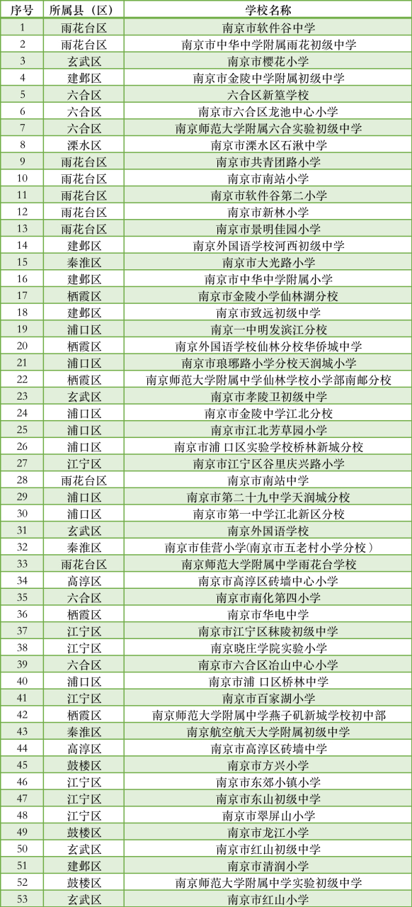 名单公布!南京53所学校入选