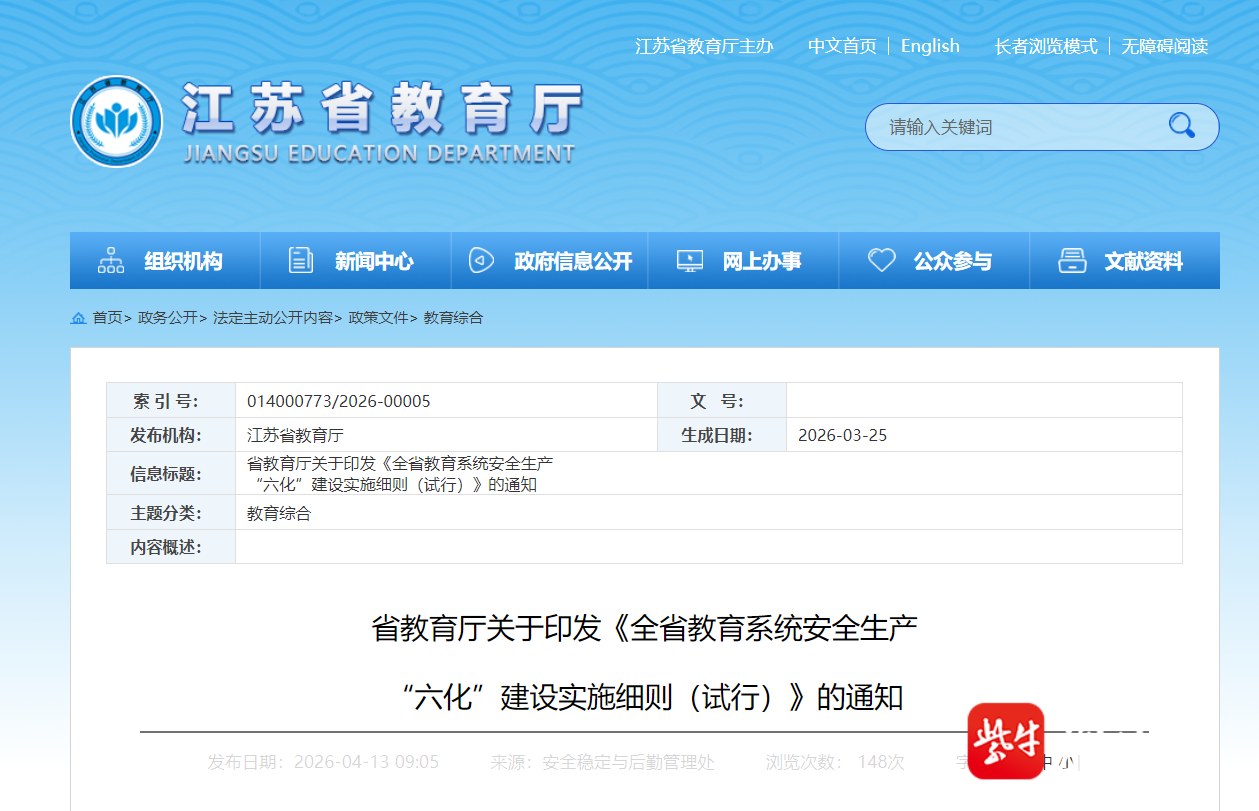 事关教育系统安全生产!江苏省教育厅最新发文,5月1日起施行