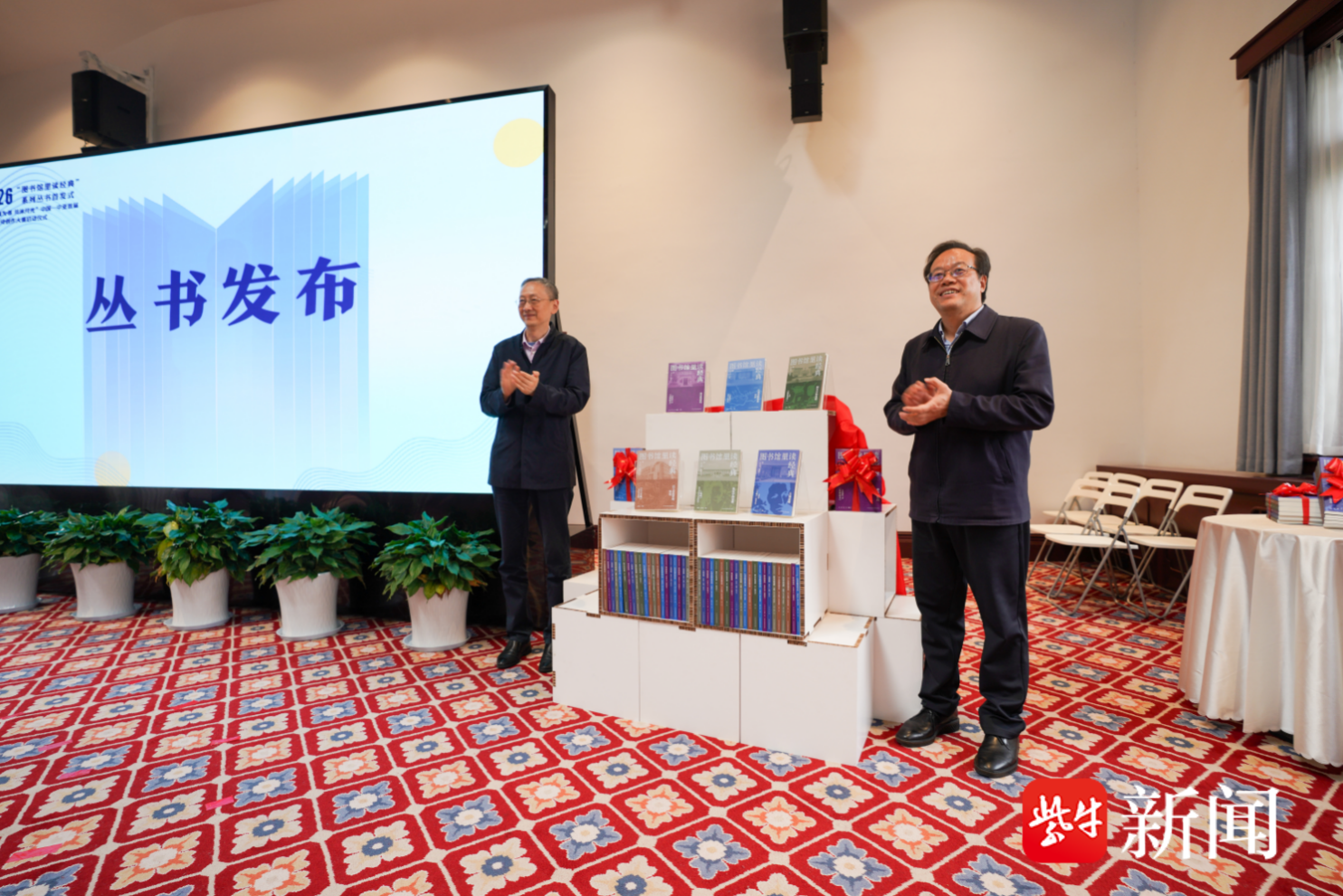 当天发布的首批“图书馆里读经典”丛书包含江苏各大高校图书馆根据自身文化底蕴与专业领域,从不同角度认真编撰的六本力作:来自南京大学图书馆的《神话的密码——多维视野下的〈封神演义〉》、来自东南大学图书馆的《铁屋中的觉醒——〈呐喊〉的当代回响与多维探析》、来自南京师范大学图书馆的《烟火中的风雅——品味〈随园食单〉》、来自河海大学图书馆的《江河奔腾里的中国——〈水经注〉地理文化探秘》、来自江苏大学图书馆《的大地弦歌——赛珍珠〈大地〉经典共读》、来自南京工业职业技术大学图书馆的《百工奇造里的华夏——〈天工开物〉技作智慧探秘》。