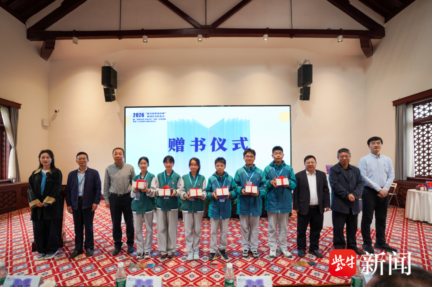 随后,黄贤金秘书长与南京出版传媒集团董事长项晓宁共同为丛书首发揭幕,并向大学生代表和中学生代表赠书,让经典阅读的接力棒在年轻一代中传递,也寄托着对青少年成为文化传承与创新生力军的殷切期望。