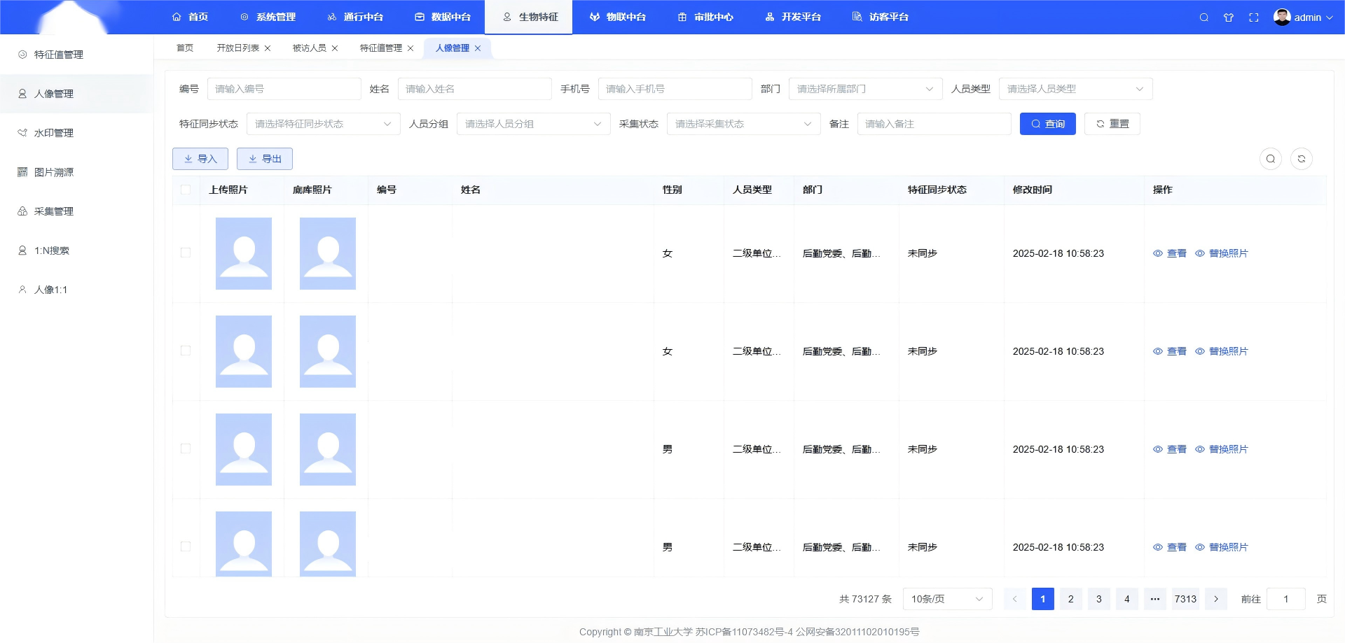 星云科技的可信多模态生物特征库以人像、掌静脉、虹膜、指纹等多种生物识别技术为核心,围绕信息安全和隐私保护,对人员基本特征库、多模态算法、设备授权接入、业务系统授权接入进行统一管理,实现人员基础信息的全生命周期安全管控和统一应用,为通行、宿舍、安防、访客、考场等各类业务应用提供安全、可信的生物特征权限调用管理,更好地提供智能化管理和生活服务。