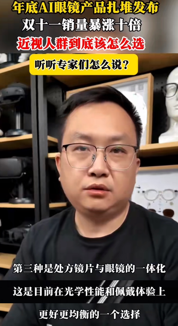 11月,国内的AI眼镜迎来新品发布潮,自己是近视眼,又想戴AI眼镜怎么办?多位专家建议,近视眼镜的用户在选购AI眼镜时也要更加关注镜片结构的安全性与佩戴体验,“一体化贴合镜片”在光学性能和可靠性方面表现更为突出。