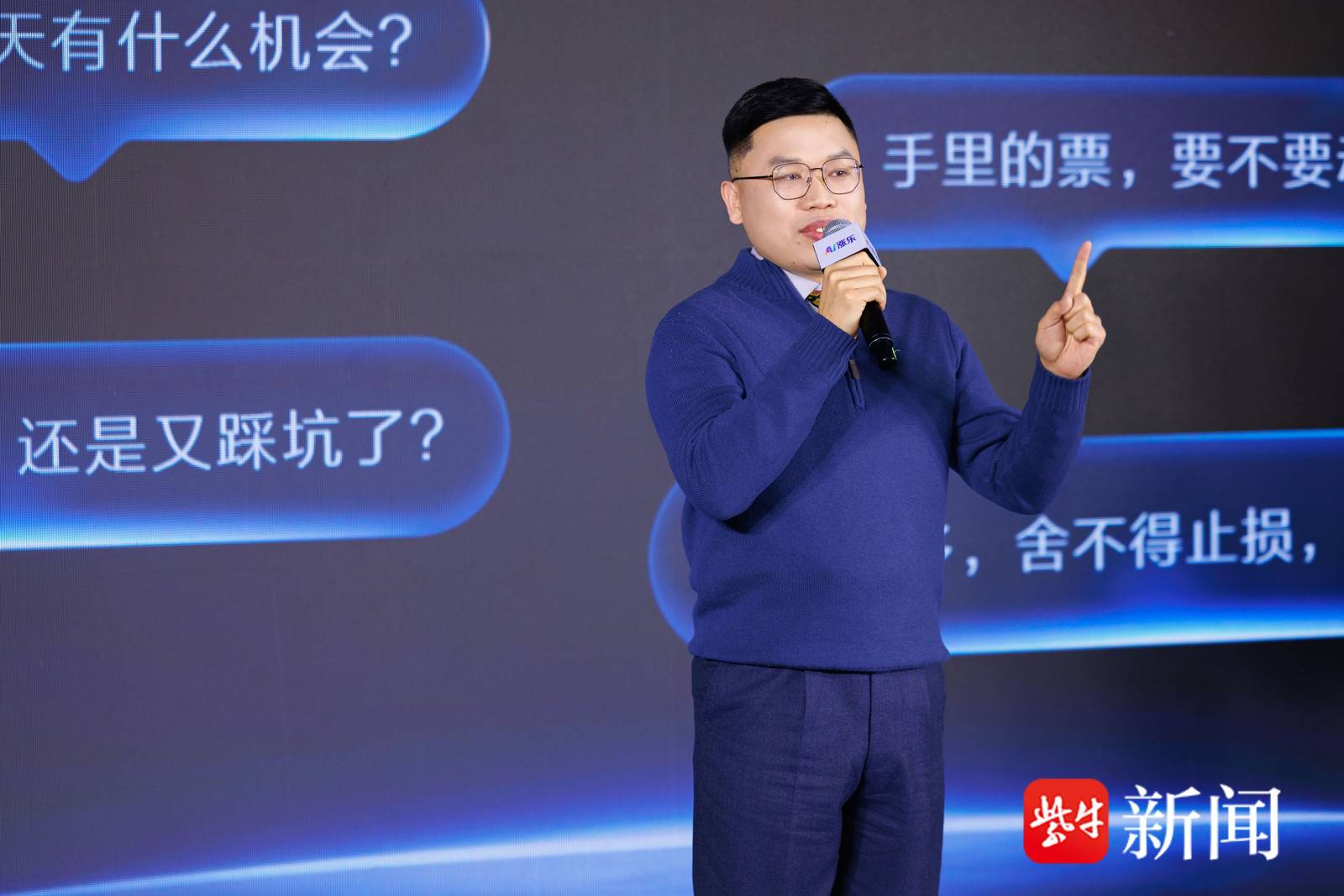 发布会现场,主持人陈铭通过语音助手“yomi”对话,展示了AI涨乐“问不倒”的专业深度。