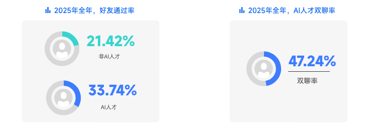AI人才好友通过率33.74%、有效沟通率47.24%,显著高于非AI人才