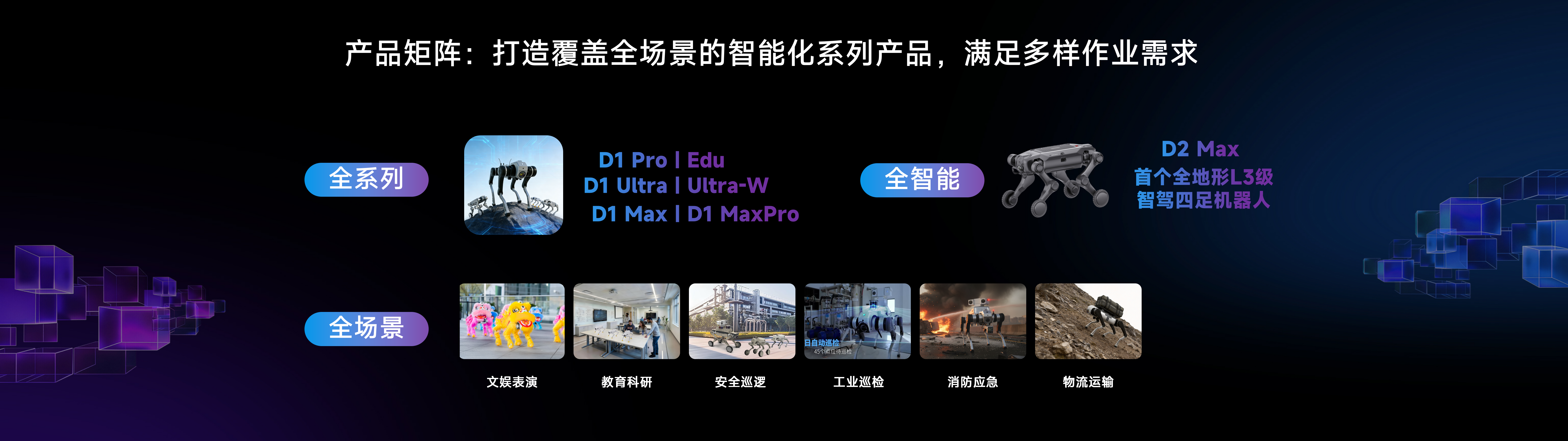目前,智元酷拓已构建覆盖全场景的产品矩阵,包括D1 Pro/Edu、D1 Max/MaxPro、D1 Ultra/UltraW等系列机型,全面覆盖物流搬运、工业巡检、安全巡逻、消防应急、文娱表演、教育科研。据透露,下一代旗舰机型D2 Max,定位为行业首个全地形L3级智驾四足机器人,将具备更强的地形自适应、精准落足、动态避障、自主导航与自主搬运能力,可在仓库、园区、管廊、工地等环境稳定执行巡检、转运、装卸等物流搬运任务。
