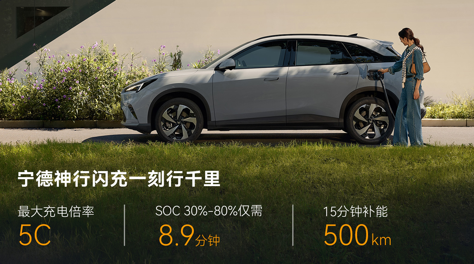 增程版采用宁德时代骁遥增程专属电池,综合续航(CLTC)高达1215公里。电池放电功率可达到140KW,纯电续航(CLTC)为215公里,Soc30%~80%充电快充仅需15分钟,一杯咖啡时间便可再次出发。