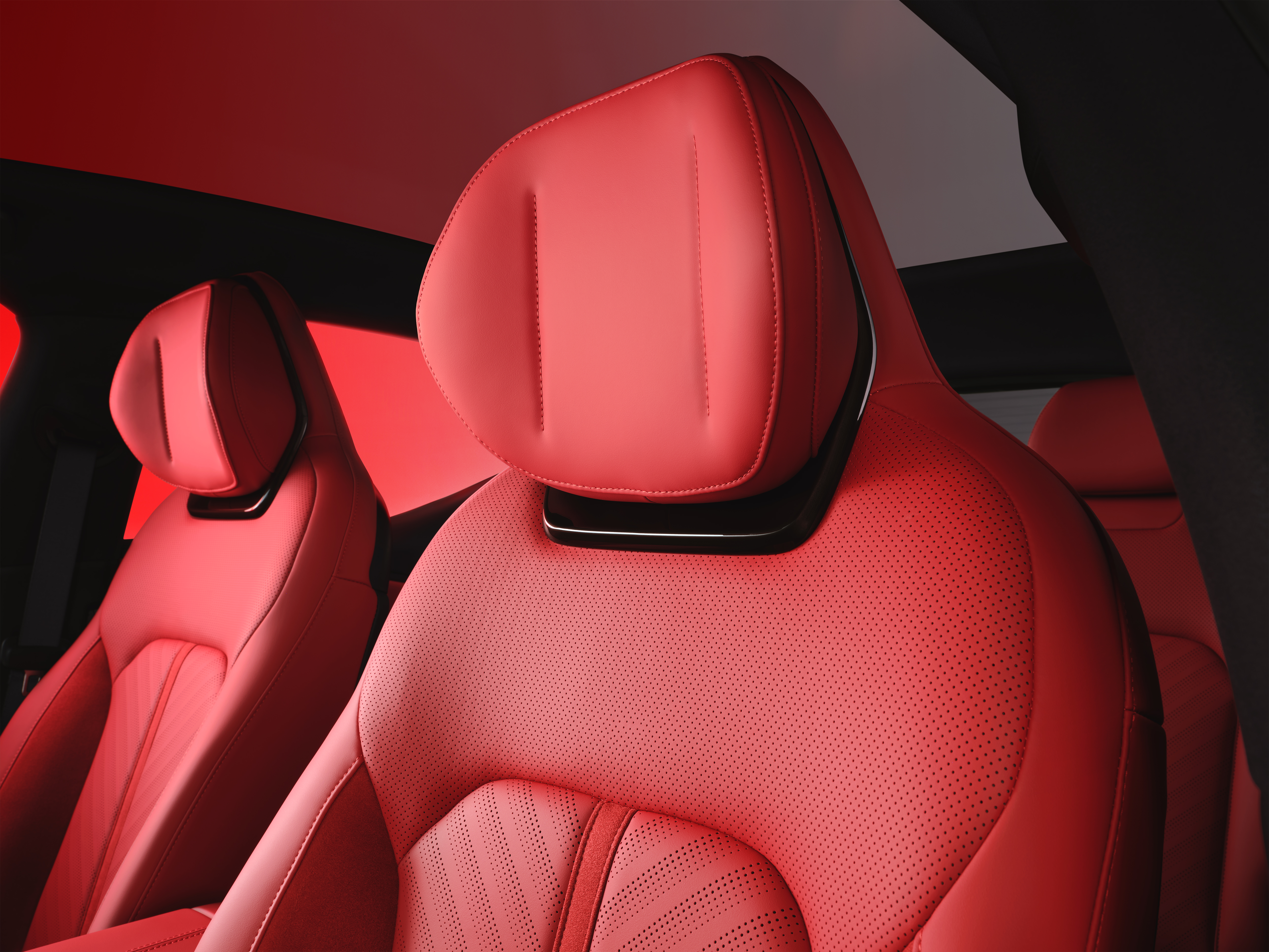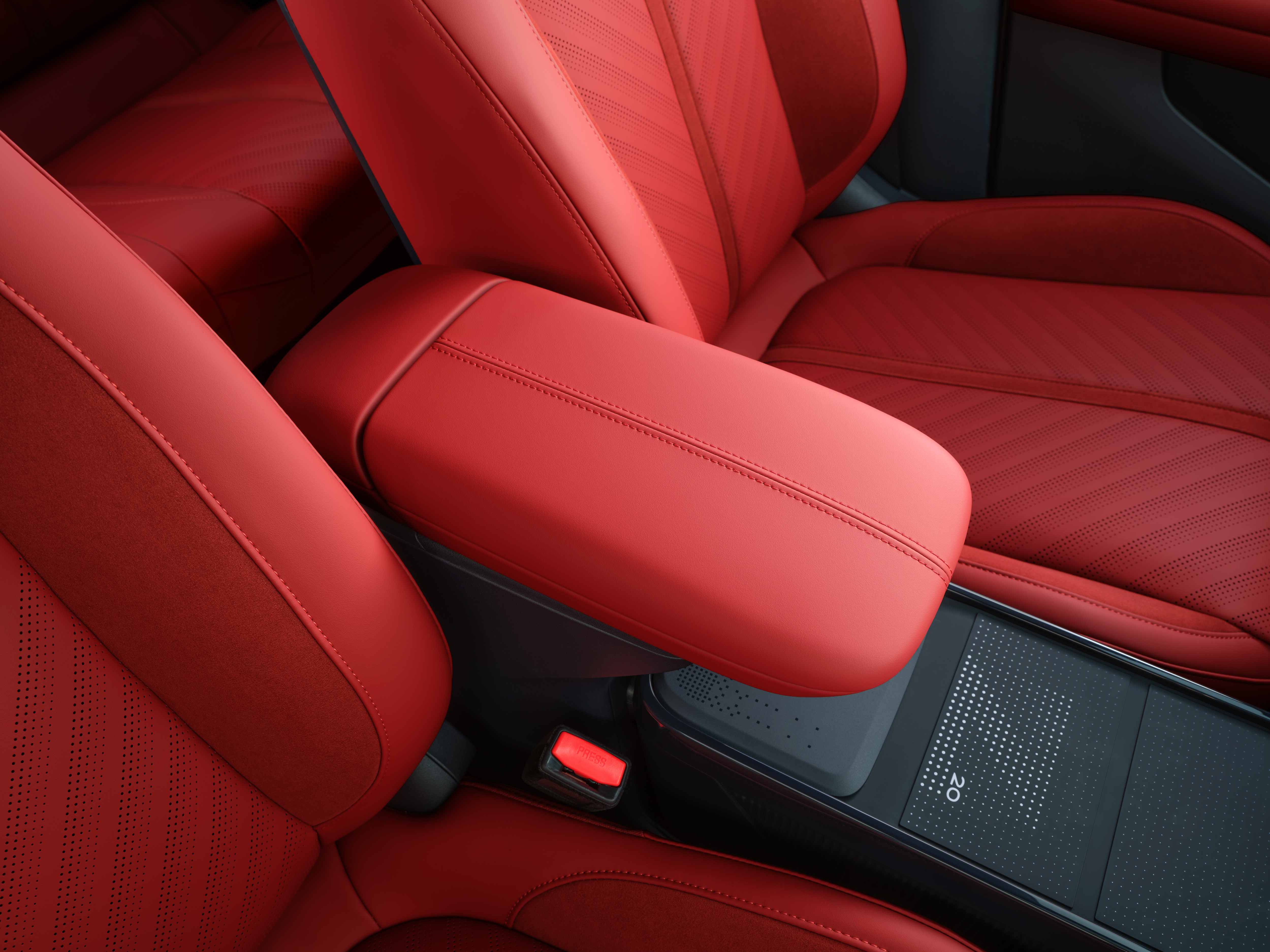 内饰的曜红颜色则以反差之美呼应外观,以曜红之名,诠释热忱与自我。从仿麂皮顶棚、赤霞珠色座椅皮质,到“前行航向标”箭头化打孔、“循迹天际线”扶手台缝线、“银雾织章”金属音响罩,整车由外到内都体现着领克Z20对“艺术品”级的精致追求。