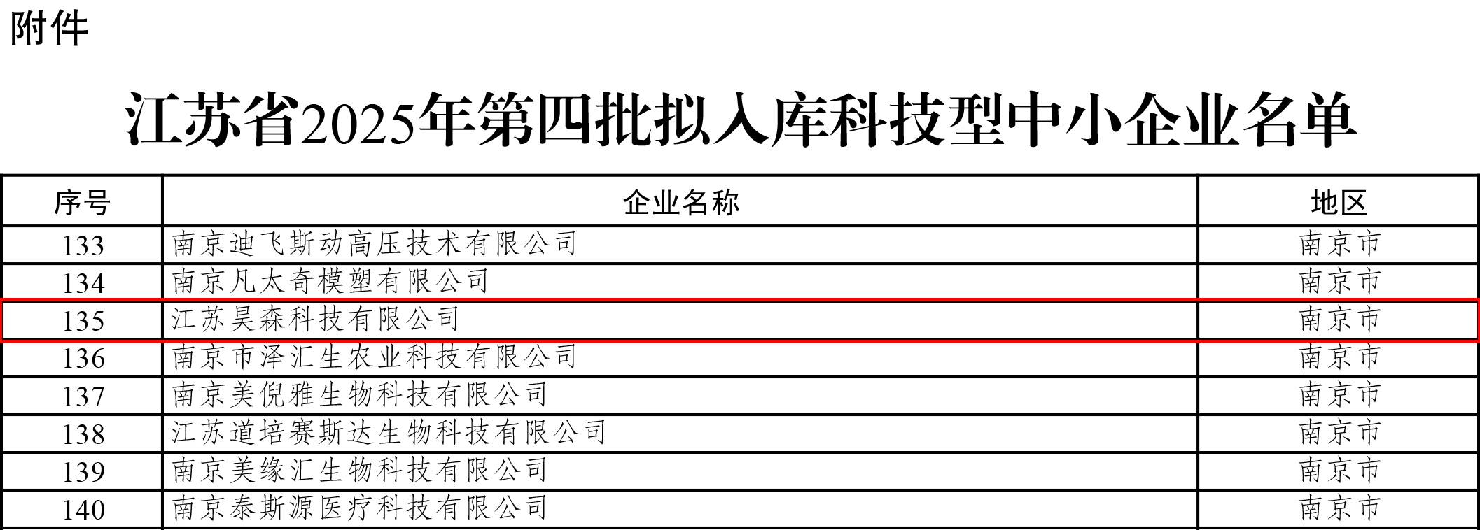11 月 11 日,江苏省科学技术厅公示了 2025 年第四批拟入库科技型中小企业名单,全省共 13069 家企业成功入选,其中南京地区入库企业达 2089 家。江苏昊森科技有限公司凭借在新能源换电设备制造领域的核心技术突破与高成长性,顺利跻身这份优质企业名单,正式迈入江苏省科技型中小企业梯队。