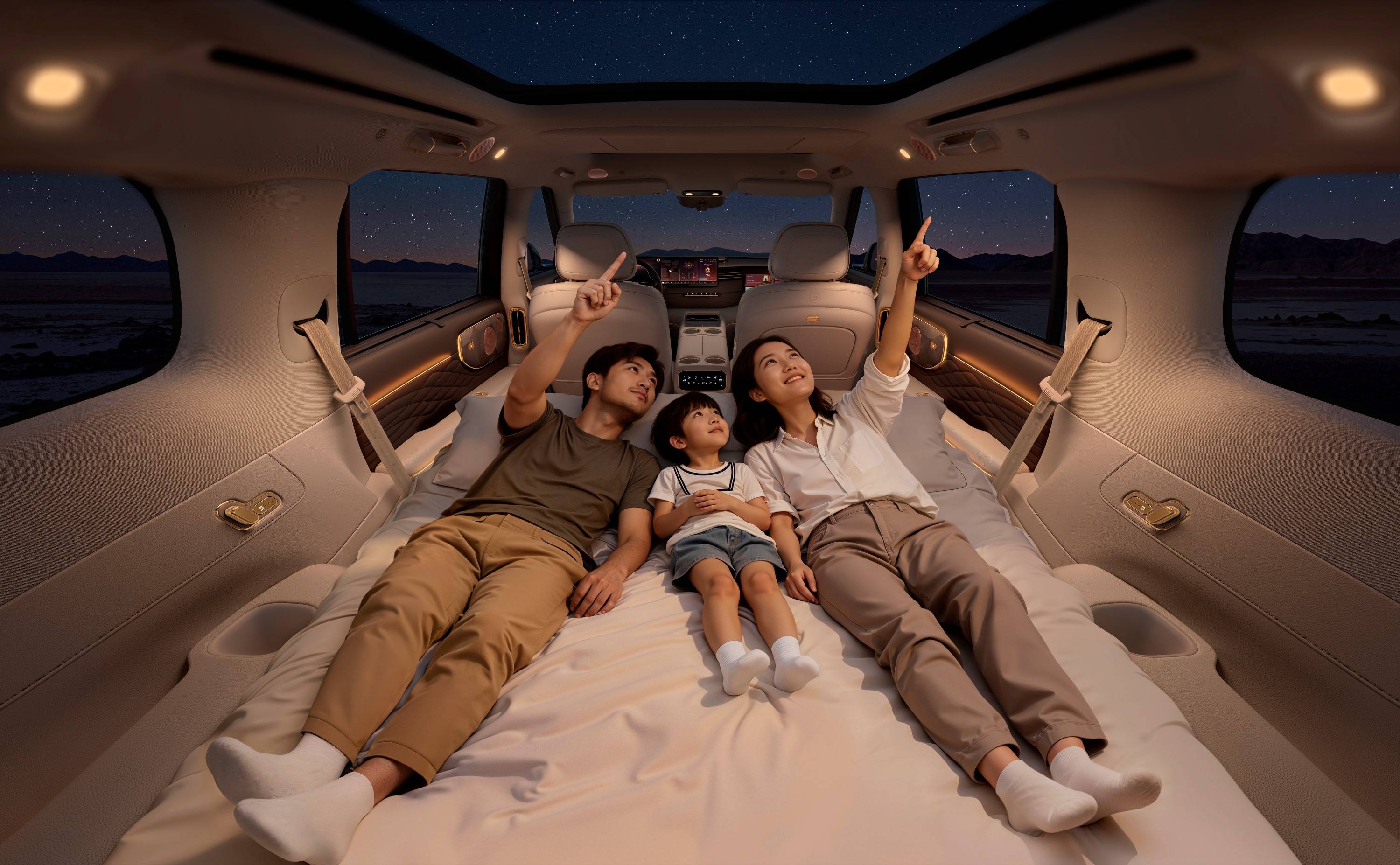 上汽旗舰,还是豪华旗舰,是都市移动大平层,也是户外移动野奢营地。旗舰级宽适空间,大且百变,拥有同级领先的86%超高得房率,全车配备三把零重力座椅,更有贵妃椅、超级大床房模式,全家人随心享受。作为首搭丹麦豪华音响品牌B&O的中国品牌车型,智己LS9的每一个座位,都能享受顶级歌剧院声临其境的极致体验;全球首搭4D机械按摩座椅,按摩强度达气动按摩的7倍,让每一次按摩都如同资深理疗师量身定制;行业首创瞬净新风系统,远超医用建筑的新风标准,尽享清新呼吸。更让人惊艳的是,智己LS9行业首创智控地暖系统,实现全车均匀升温,肤感温润舒适。独家野奢户外套装,实现24小时用水自由,无论是骑行徒步后更衣,还是溯溪后给孩子冲脚,让户外生活如家般舒适,是喜欢轻户外运动家庭钟情的超级配置。