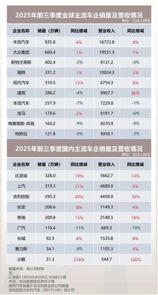 2025年临近收官,全球汽车业正面临形势严峻的阶段性调整期。三季报数据显示,全球头部车企均出现增长乏力现象。