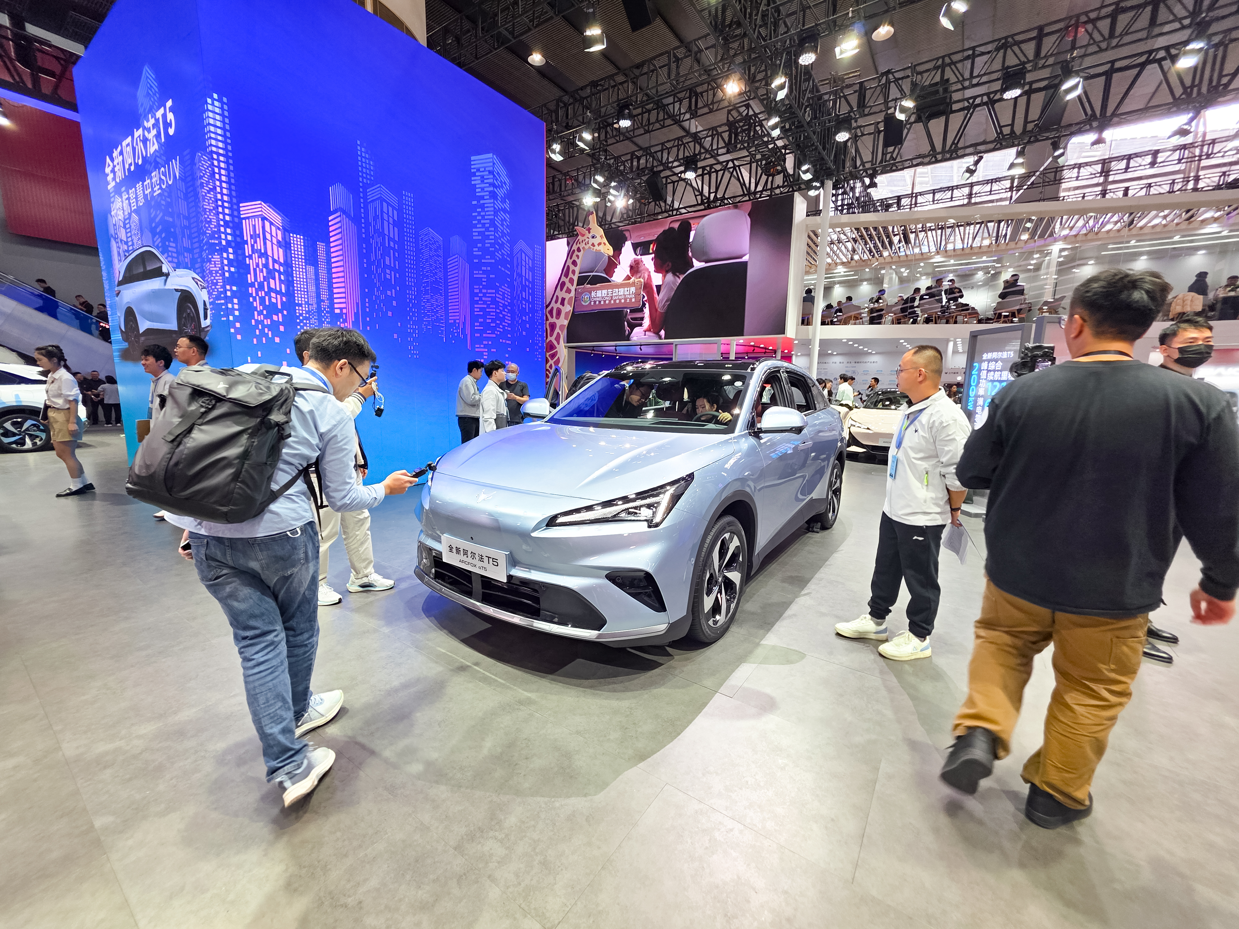 刚上市不久的新阿尔法T5,成为展台的一大亮点。围着这款车的观展者,让新阿尔法T5始终处于”营业“状态,一刻不得闲。