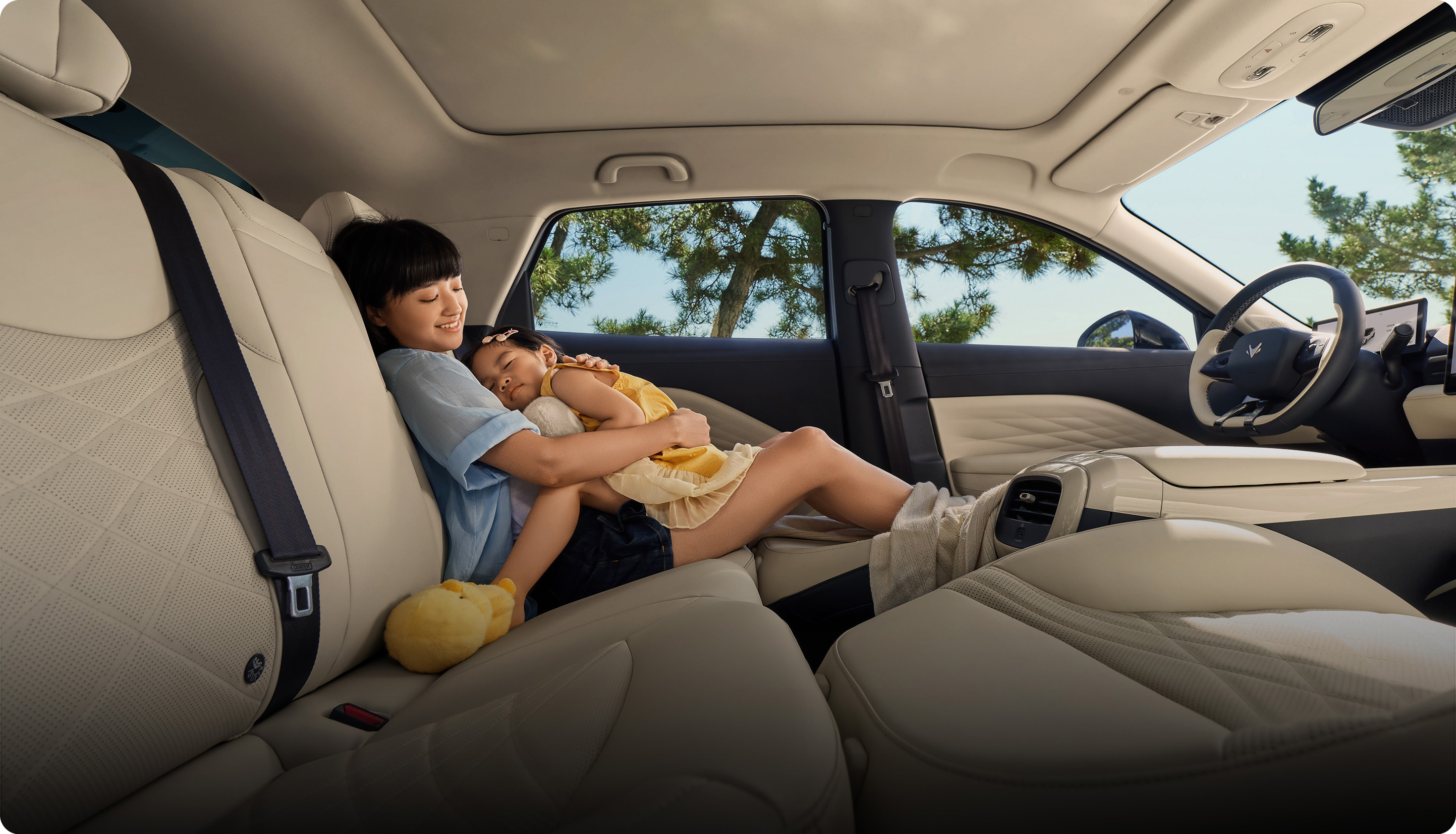 无论是日常通勤还是周末出游,T1都能让全家坐得舒服、用得顺心、呼吸安心。内饰采用与百万级车型同款材质——Microcloud纤维绒高级皮革,触感细腻、环保无味;搭配15.6英寸悬浮中控屏和2.34㎡全景天幕(带全开式电动遮阳帘),营造出通透、高级的环抱式科技座舱。全系标配吸附降解材料,达到母婴级健康标准。孩子在车内吃零食、摸内饰,家长无需担忧。随叫随到,动口不动手,支持全场景AI语音助手(免唤醒、方言识别),3.3kW外放电,电磁炉煮火锅、电水壶烧水都能轻松供电。