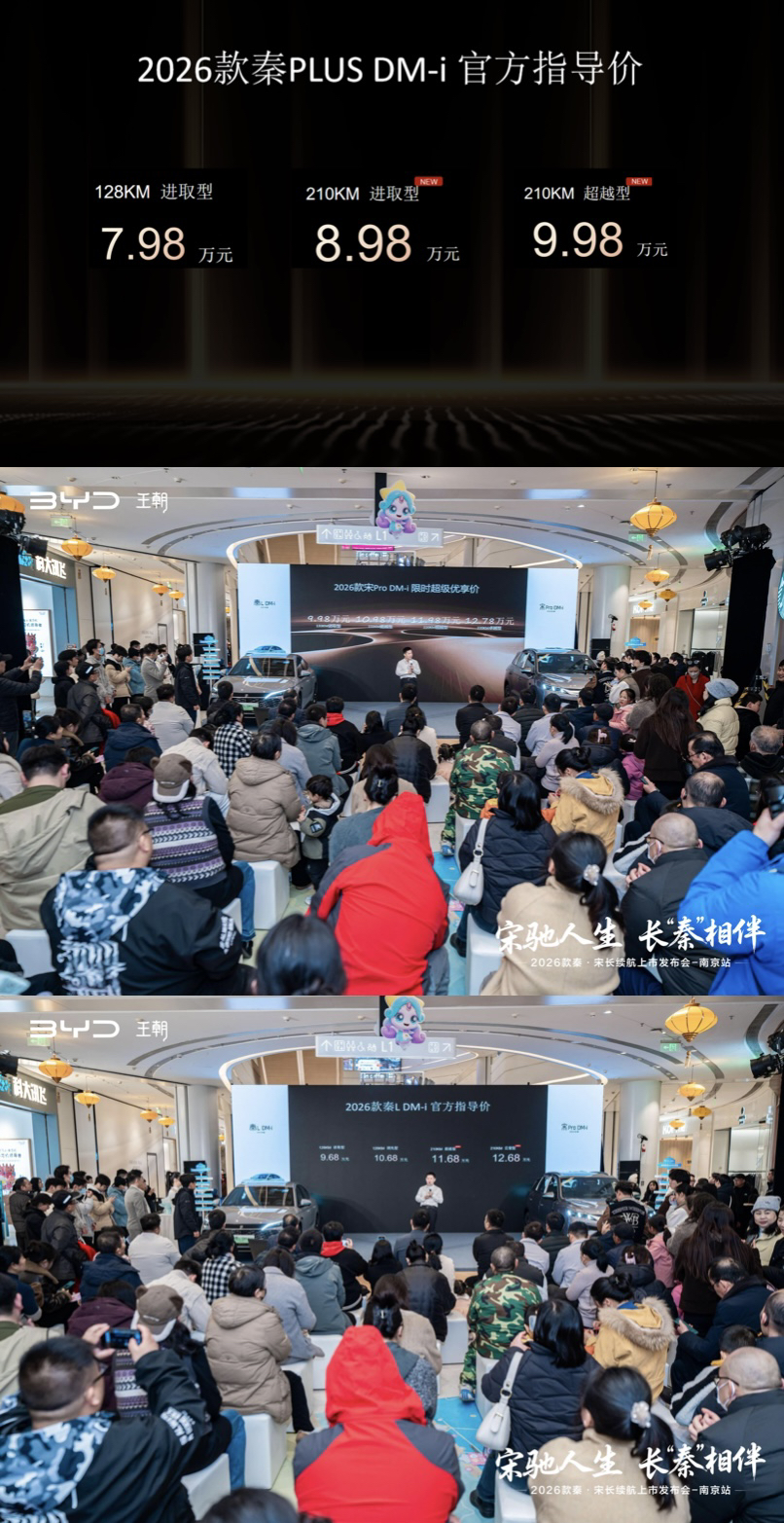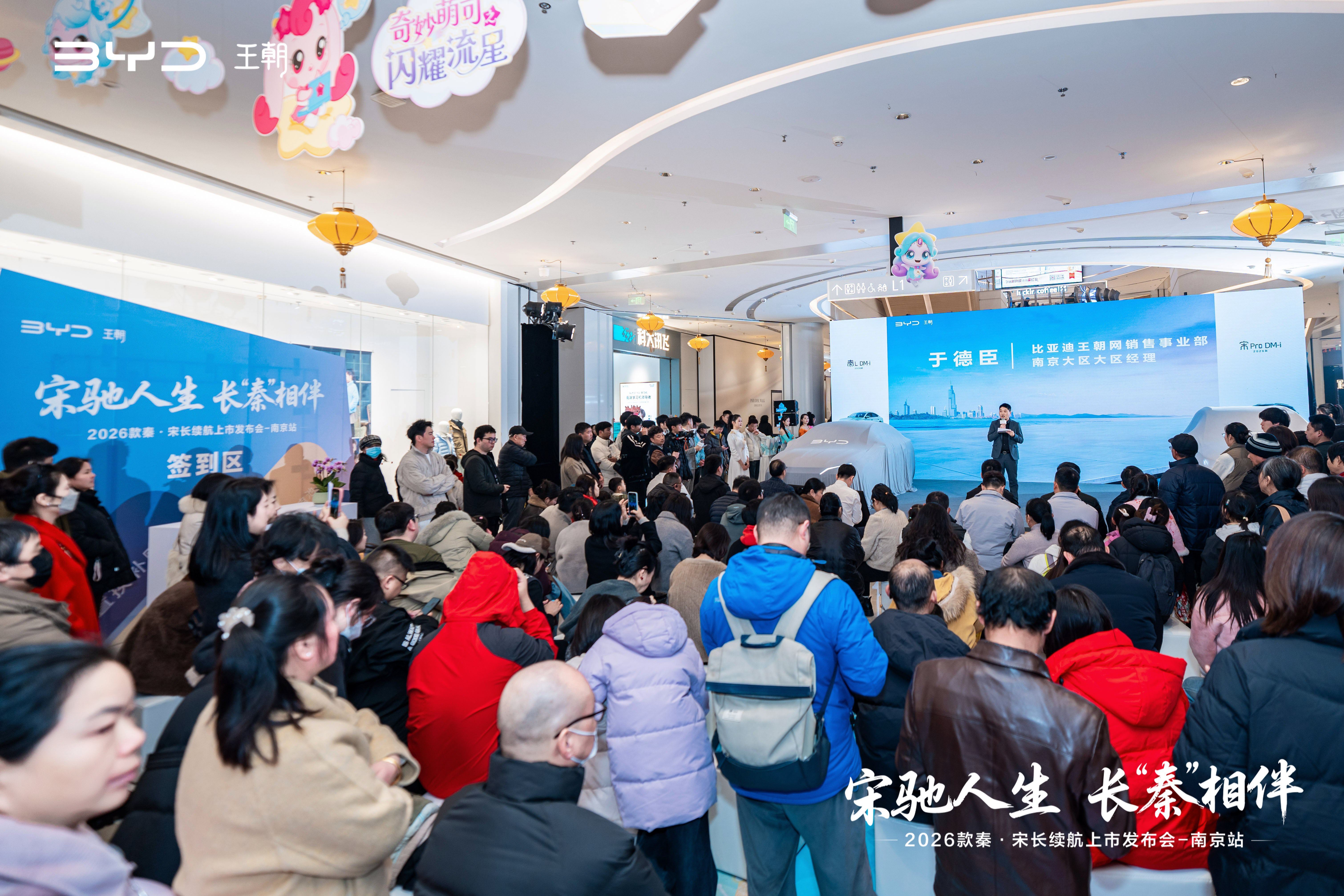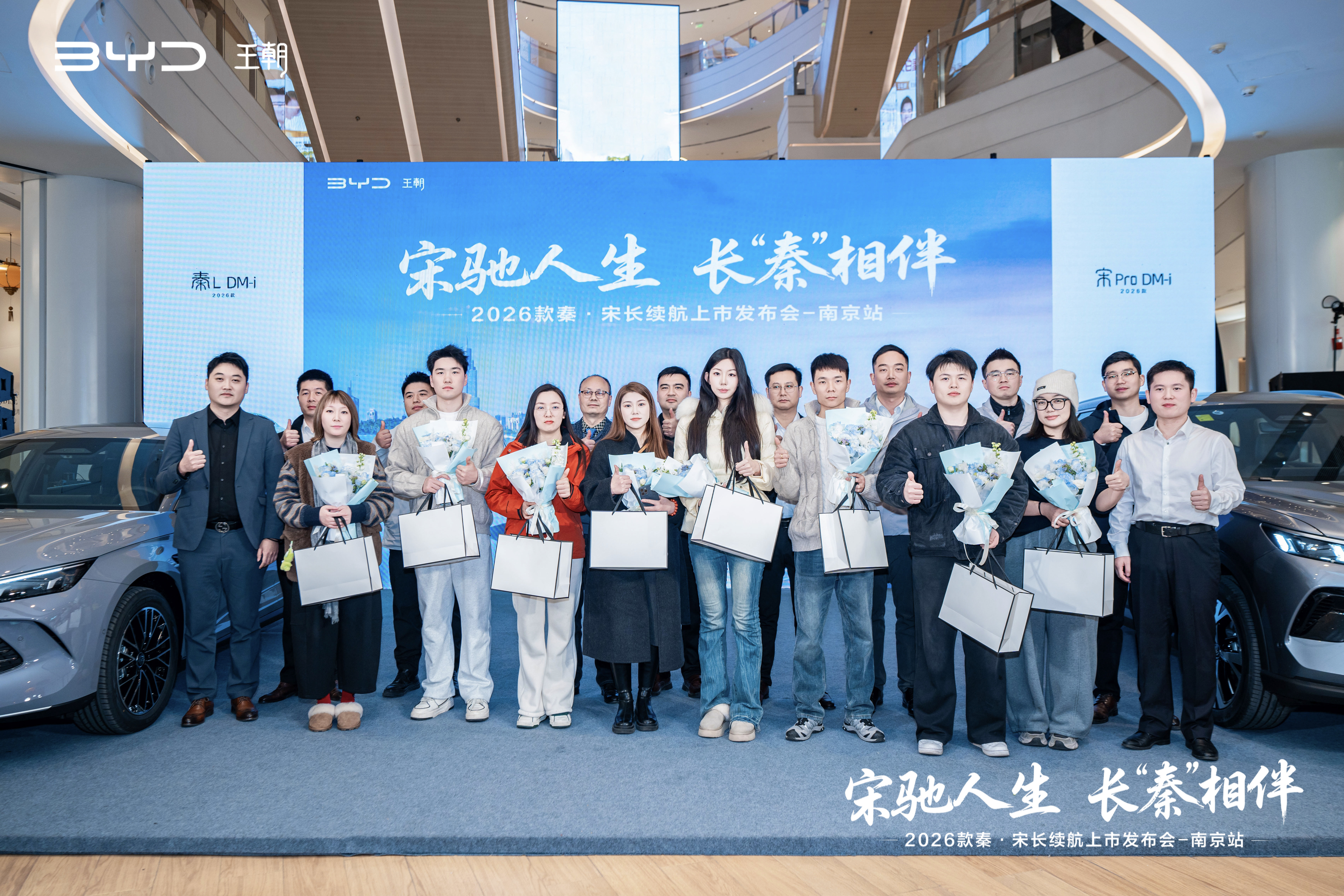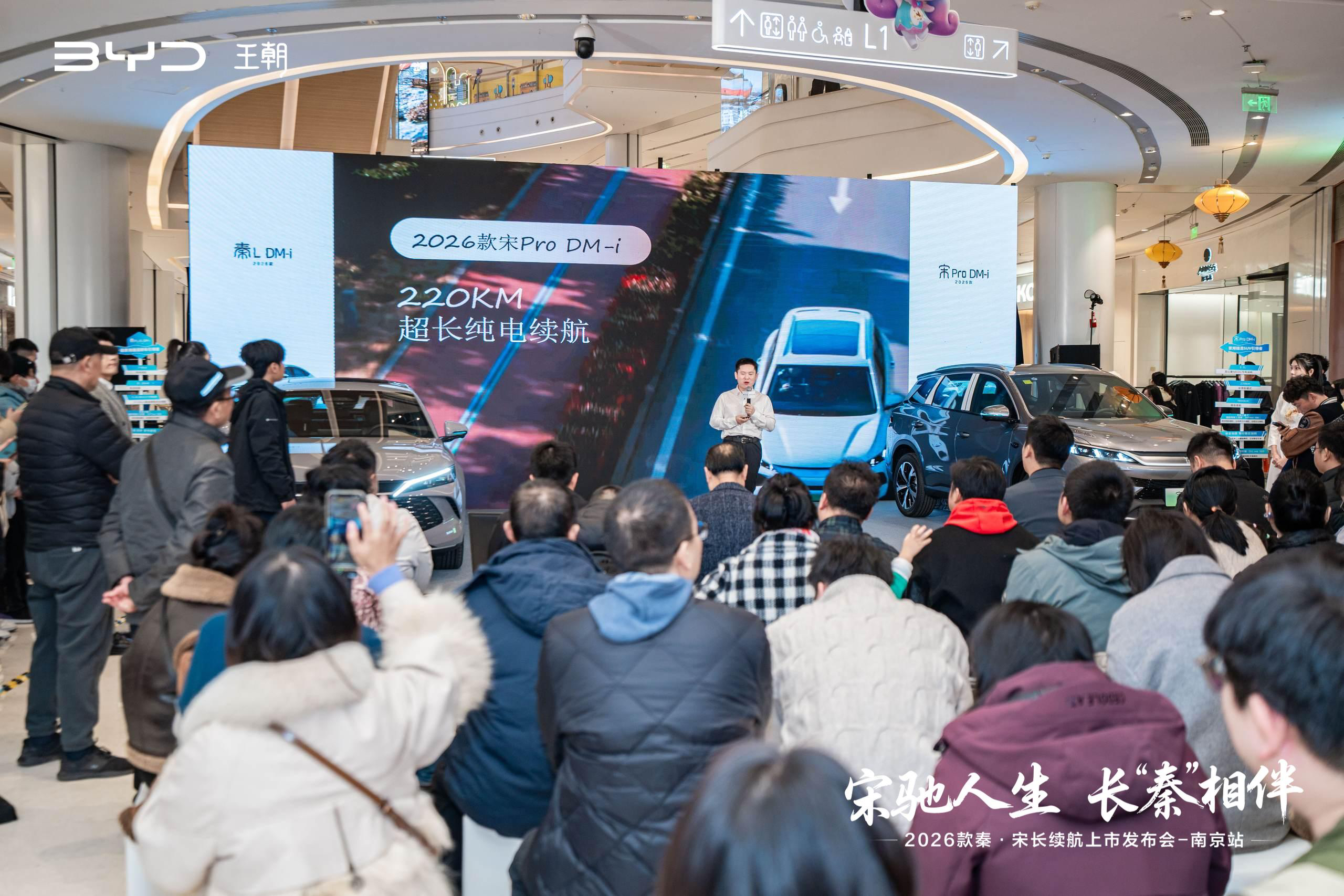 新年伊始,六朝古都南京迎来比亚迪王朝2026款新车上市发布。1月17日,“宋驰人生 长‘秦’相伴——2026款秦·宋长续航上市发布会·南京站”在南京江宁龙湾天街盛大启幕,2026款秦L DM-i、秦PLUS DM-i、宋Pro DM-i联袂登场,以全面进化续航,为广大用户提供更为高效的出行选择。