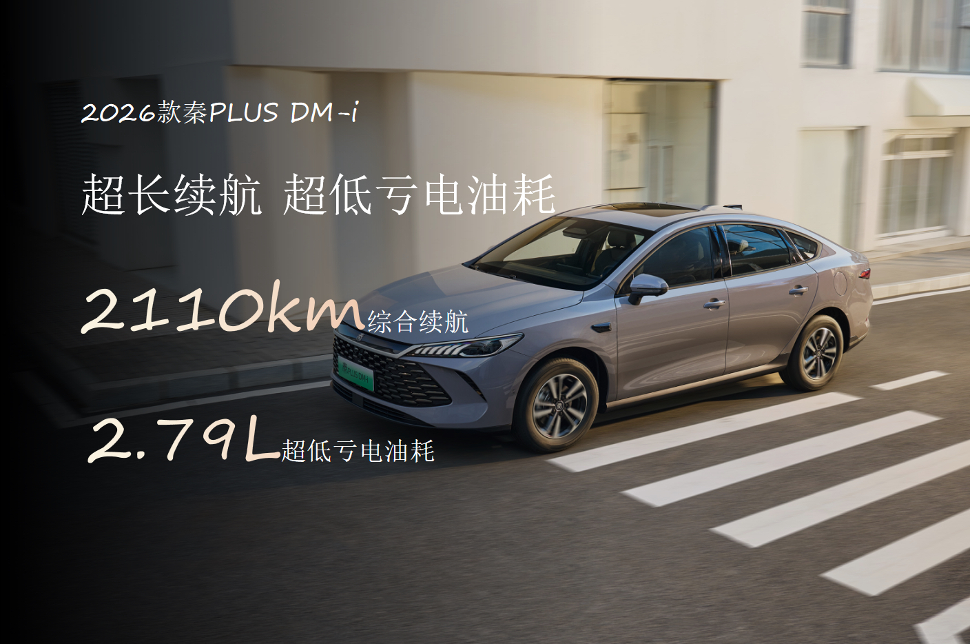 2026款秦PLUS DM-i 家用插混轿车引领者,作为比亚迪王朝网的核心车型,2026款秦PLUS DM-i长续航版配备25.28kW·h大电池,提供高达210公里的CLTC纯电续航,百公里亏电油耗仅为2.79升。它为城市通勤提供了极高的灵活性与实用性,城市出行完全可以依赖纯电模式。外观提供七种多元化颜色选择,满足年轻家庭的审美需求,内饰更采用环抱式悬浮座舱设计,打造宽适空间并配备先进智能配置。通过天神之眼C-辅助驾驶系统,为车辆提供了全方位的安全防护,使驾驶出行更加轻松与安全。![]()