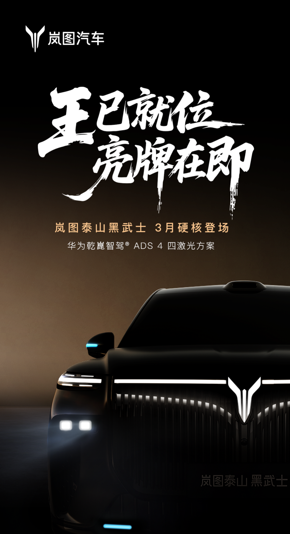 “黑武士”登场!岚图泰山限定版3月震撼上市,定义智能豪华新标杆