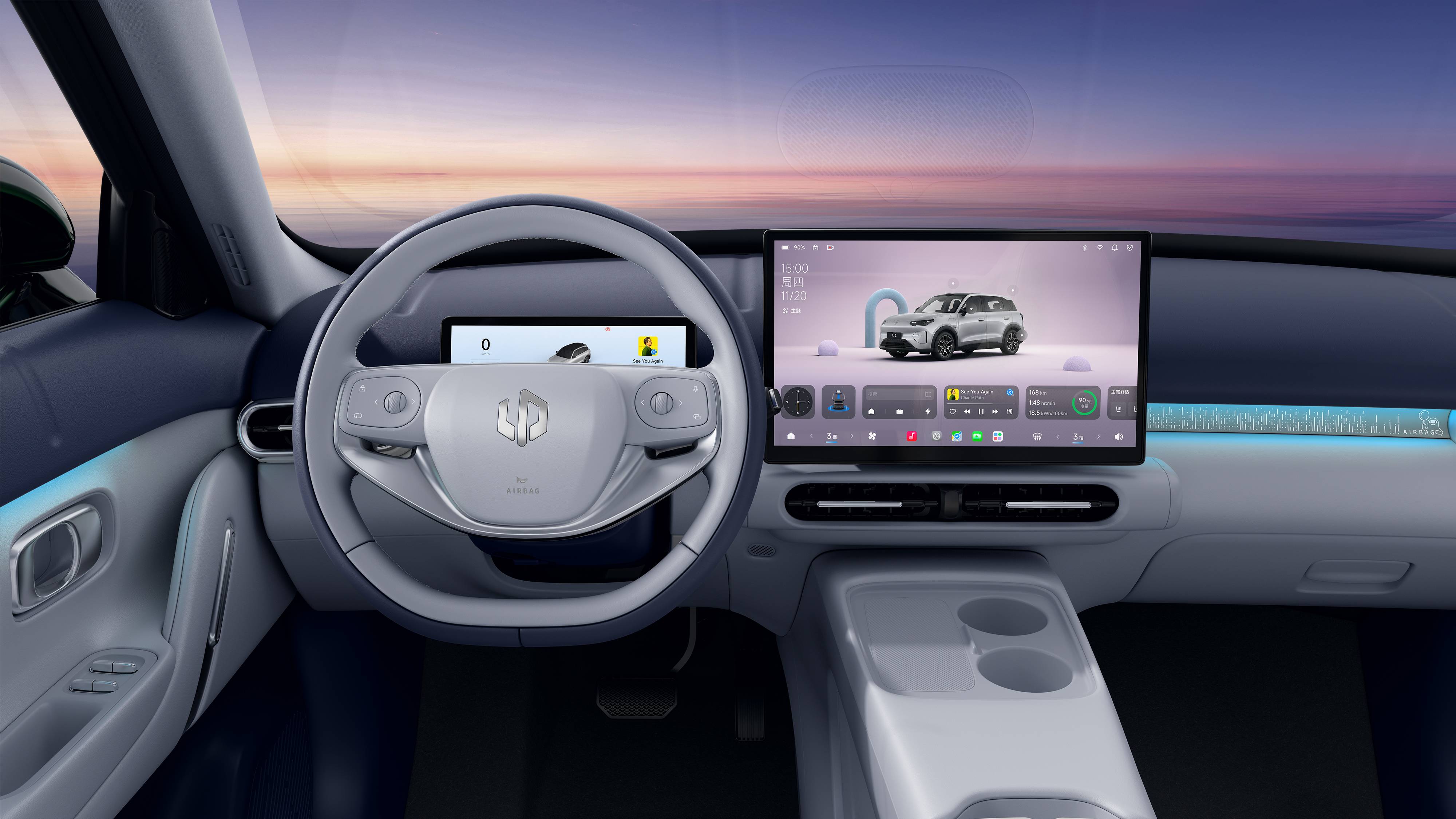 此外,零跑A10搭载行业首创悬浮式IP Bar,采用百变灵感悬浮式设计,支持官方DIY附件——氛围灯、香薰、安全锤、玩偶平台等随心组合。