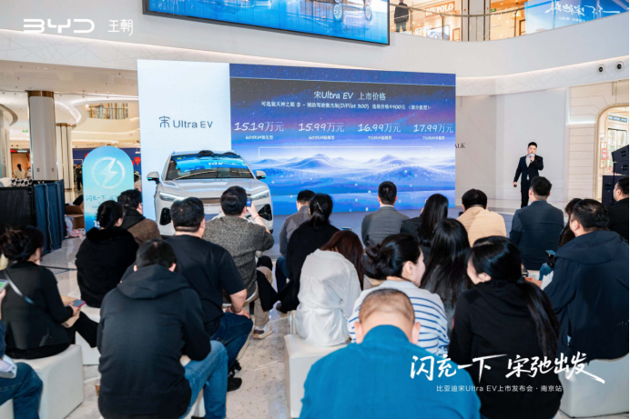 3月29日,比亚迪王朝网在南京举行“闪充时代·宋弛出发”——宋Ultra EV上市发布会南京站活动。众多粉丝和车主齐聚六朝古都,共同见证宋Ultra EV的出众性能,感受闪充时代极速补能的魅力。新车共推出4款车型,售价区间为15.19万—17.99万元。在竞争激烈的15万级纯电SUV市场中,宋Ultra EV凭借闪充技术、越级配置、舒适空间与扎实的安全性能,展现出强劲的产品竞争力。