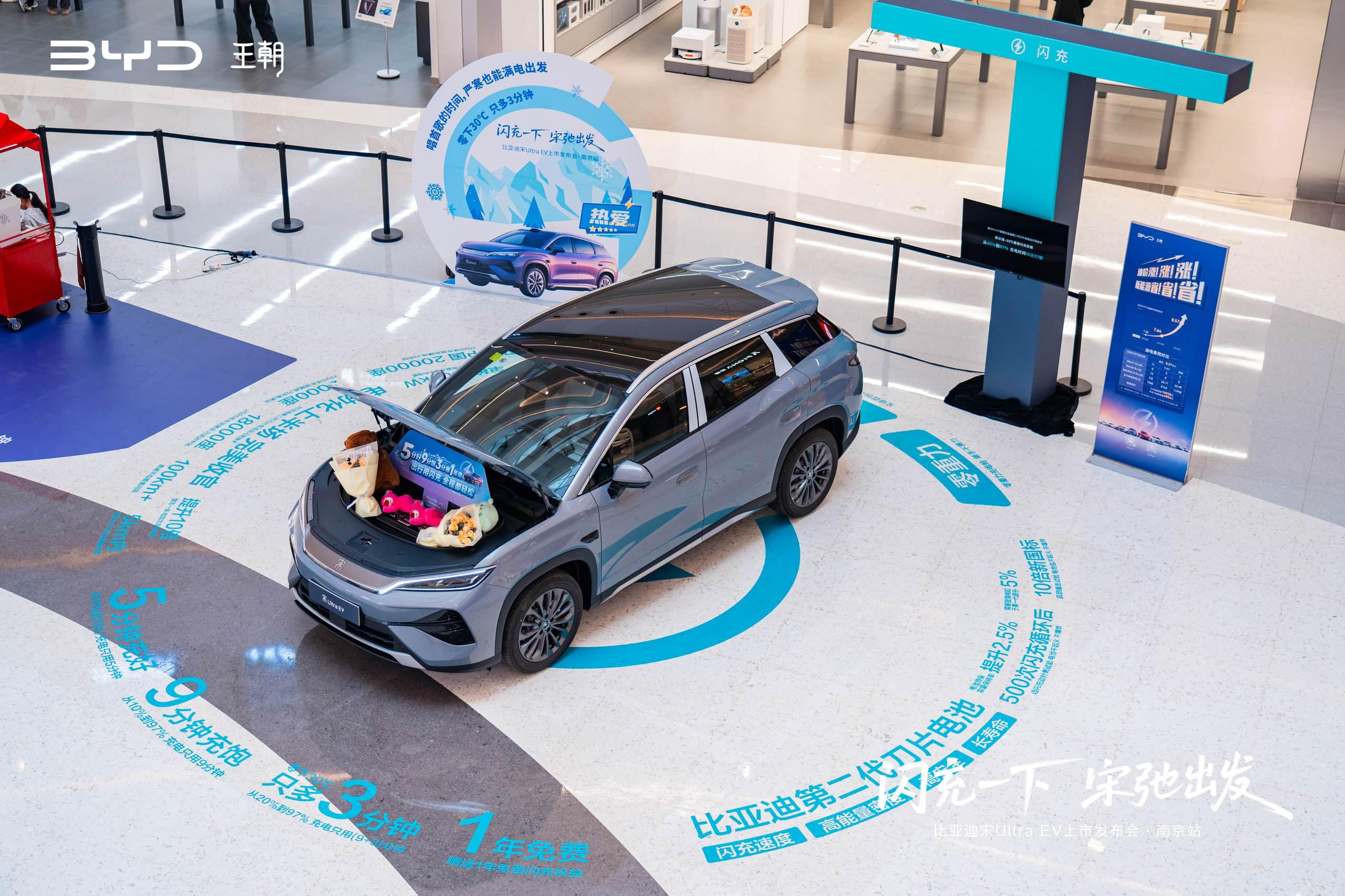 目前南京所有比亚迪王朝网销售门店均已到车,宋Ultra EV已配备到位,南京区域部分闪充站已投入运营,用户可下载闪充APP搜寻,进行零距离体验。