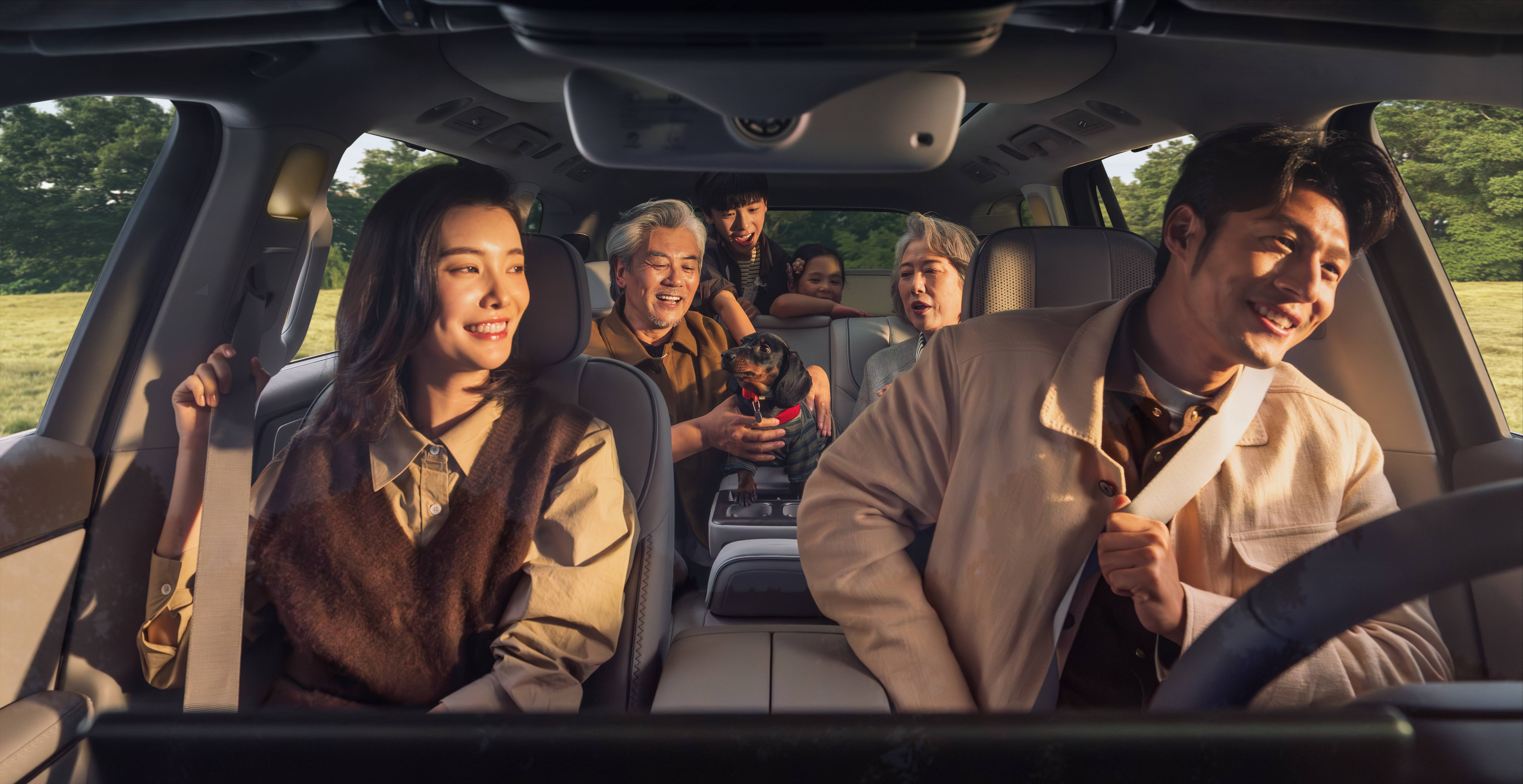 座椅采用12层奢享级结构,全车座椅支持电动调节,并实现6座加热、4座吸入式通风与10点式按摩,二排右侧零重力座椅支持120°零压躺姿、4向腿托与ABTS一体式安全带,1.9米乘员也能享受悬浮式休憩体验。第三排为同级超大贵宾座,支持131°靠背无极调节、座椅加热与一键电动翻折,搭配专属双扶手与全平地台,彻底解决传统三排“小板凳”痛点。此外,二/三排专属遮阳帘遮蔽率分别达93.2%、91%,全方位兼顾舒适与隐私。