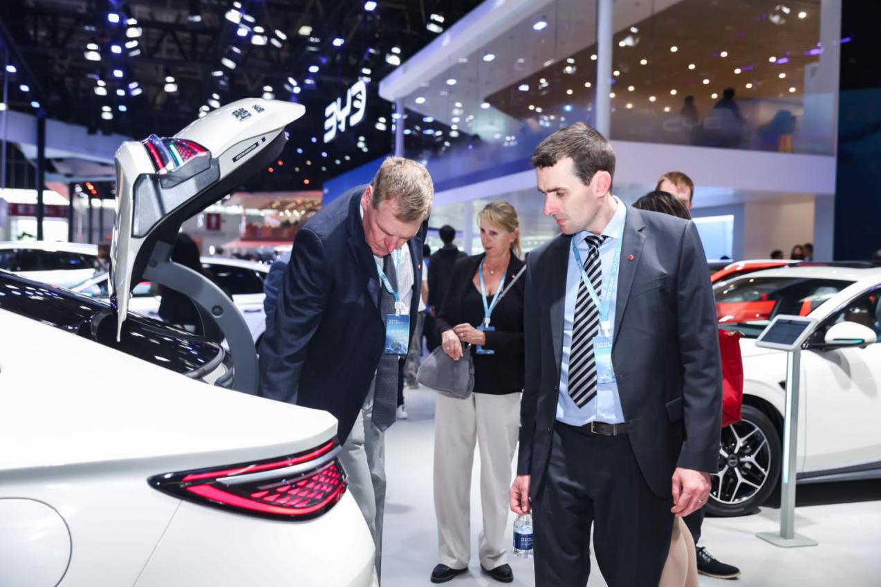 展馆内还有大量海外观众与国际媒体驻足围观。外国友人在车型与技术区反复体验、不停拍照,纷纷发出惊叹:“Chinese EV is amazing!”“BYD number one!”对比亚迪的产品实力与技术创新赞不绝口。