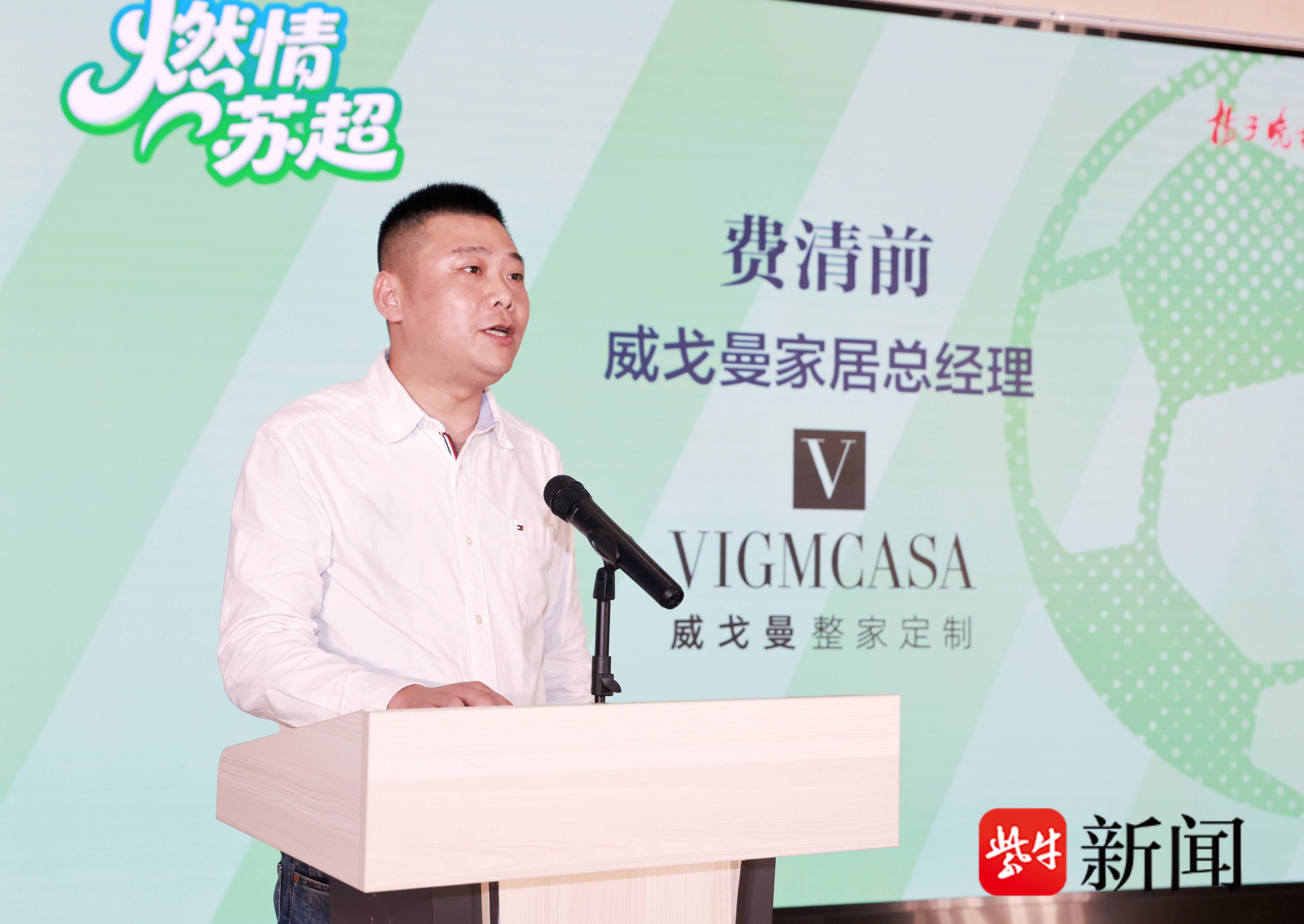 费清前在致辞中指出,威戈曼家居一直倡导“健康生活与美好人居”的理念,此次冠名“燃情苏超”访谈直播,正是因为“苏超”所承载的拼搏向上、追求卓越、凝聚合力的体育精神,这与品牌倡导的健康品质生活高度契合。威戈曼期待通过赛事直播,与广大球迷深度连接,带来更燃、更近的观赛体验。