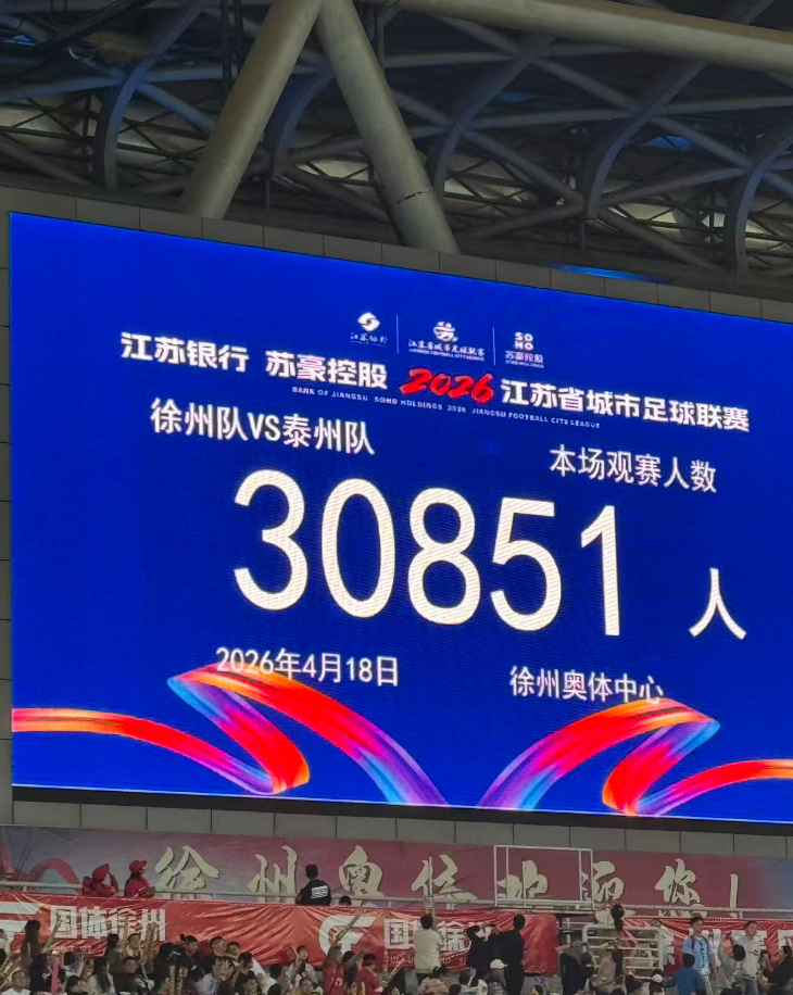 4月18日,徐州赛场现场观众30851人。