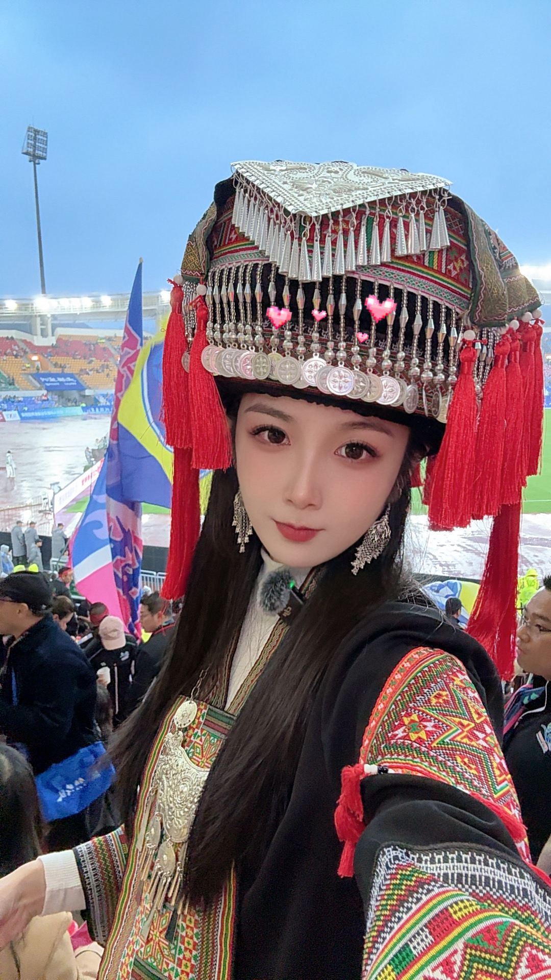 图为“湘超志玲”龙月瑶身穿永州民族服装参加“苏超”。