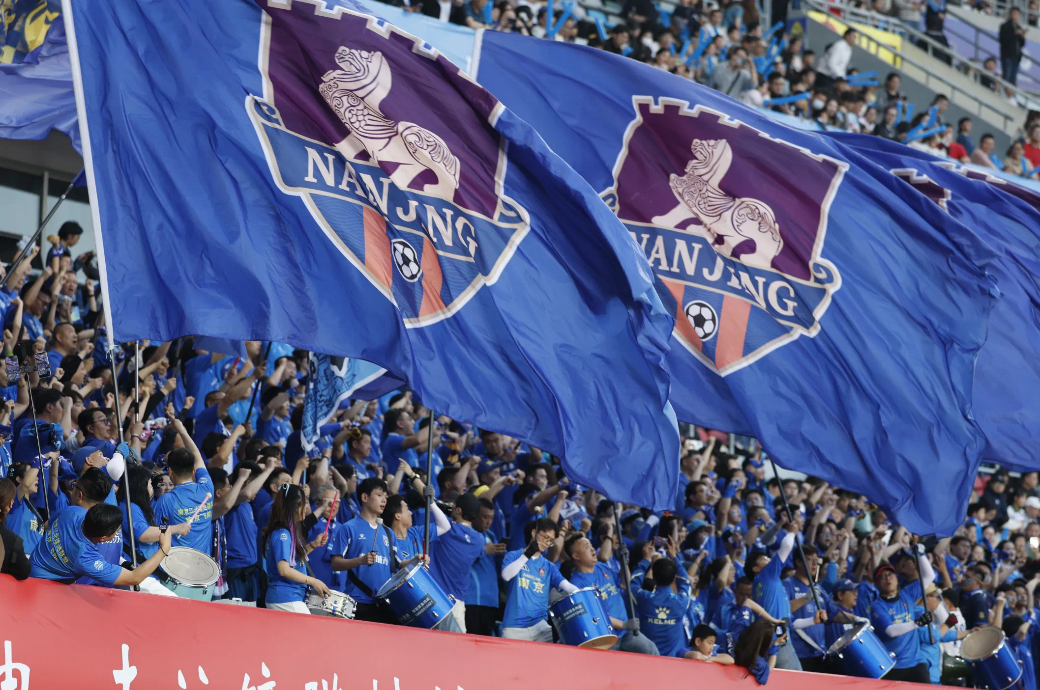 南京球迷摇旗呐喊。