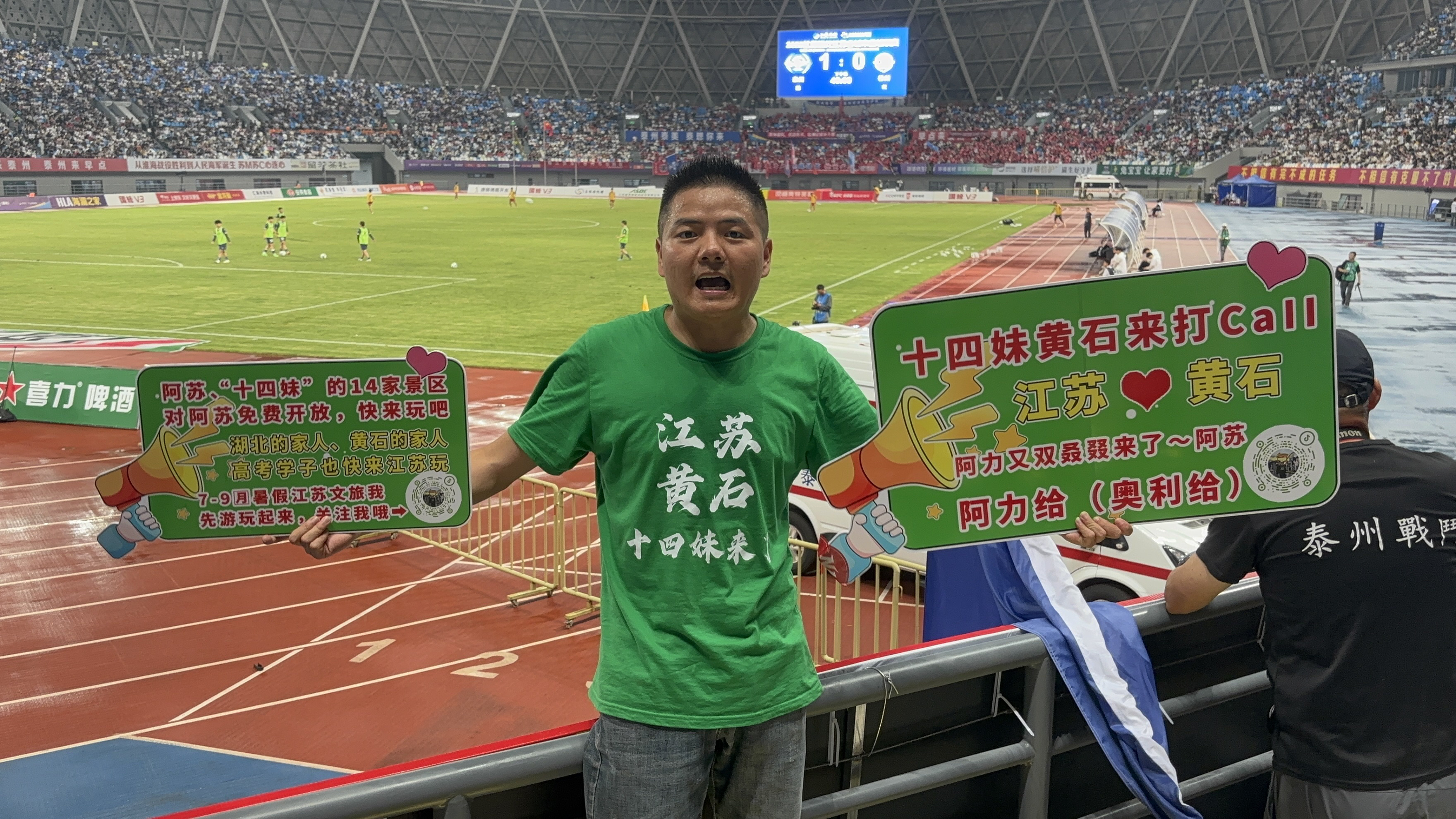 泰州球迷一景。