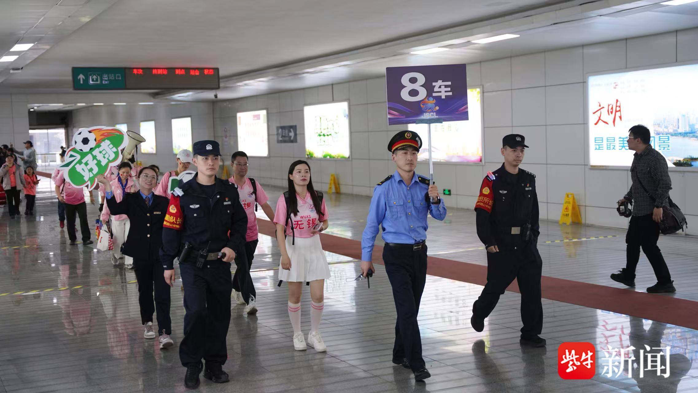 为了让球迷旅客享受到更加优质的出行体验,车站为球迷团体开设绿色进站通道和专属候车区,组织车站党团员和志愿者成立球迷服务队,为球迷提供提前检票、专人引导乘车等全程专属服务。为了让球迷在进入车站后就能感受到浓厚的赛事氛围,车站提前在候车室内设置大幅“苏超”主题宣传展板,为球迷准备了合影用的主题横幅、多种形式的应援手举牌,让球迷在候乘过程中就能纵享“苏超”激情。