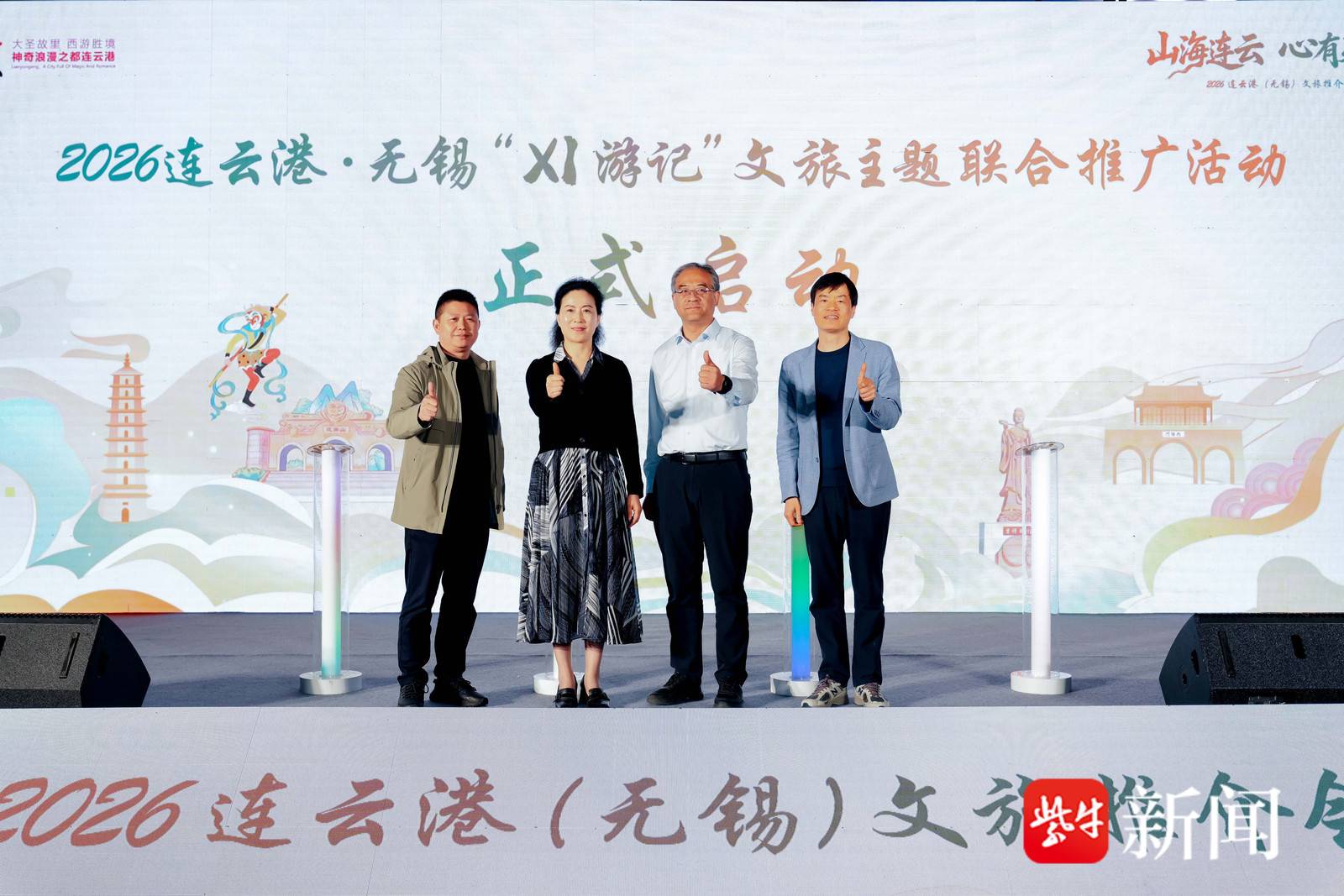 现场,锡、连两地嘉宾共同启动2026连云港・无锡“XI游记”文旅主题联合推广活动,围绕西游文化、山海风光与江南水乡特色,以“XI游记”IP串联两地文旅资源,打造跨城文旅消费新场景,推动两地文旅市场互利共赢、协同发展。