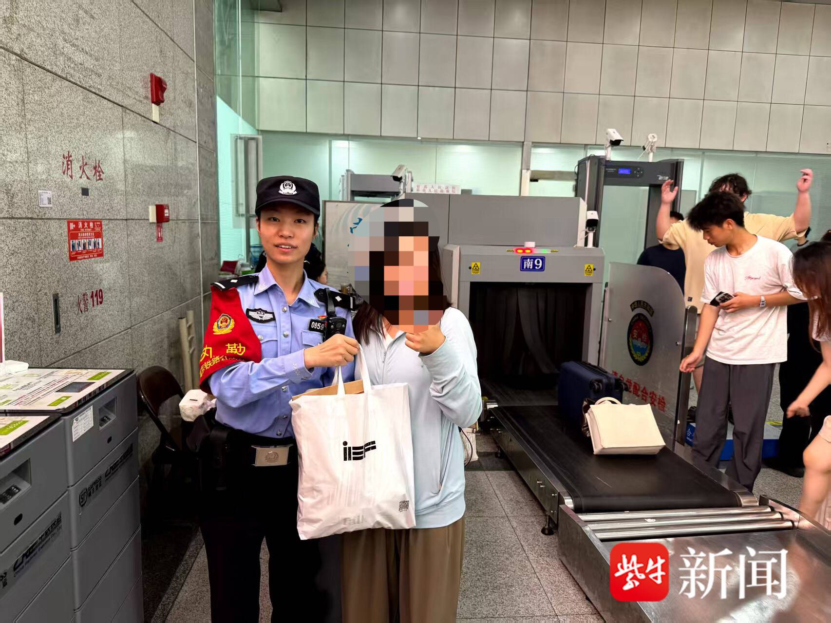 无独有偶,10月2号当天,南京站派出所民警又接到了一起报警。一名旅客在南京站南软席候车室进站乘车时,不小心将自己的装有钱包银行卡等重要物品的白色袋子遗忘在一楼进站安检口闸机上。安检岗值守的民警等了很久不见失主回来寻找,便捡回包拿到民警值班室保管。而已经在候车的王某突然想起来包不见了,回头又急匆匆地赶来报警。民警及时将背包交还王某。