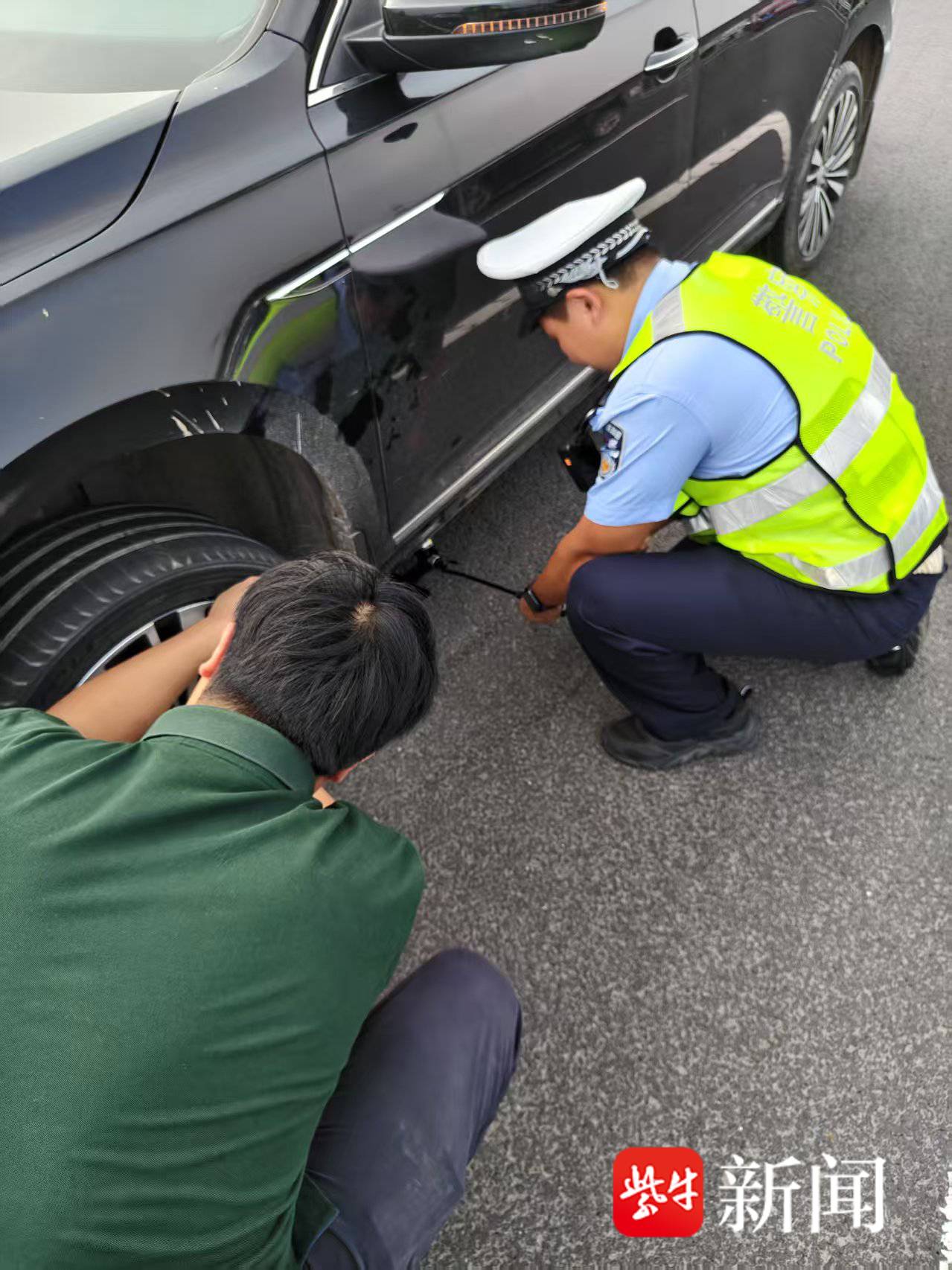 视频|车胎漏气被困高速,交警秒变“修车工”