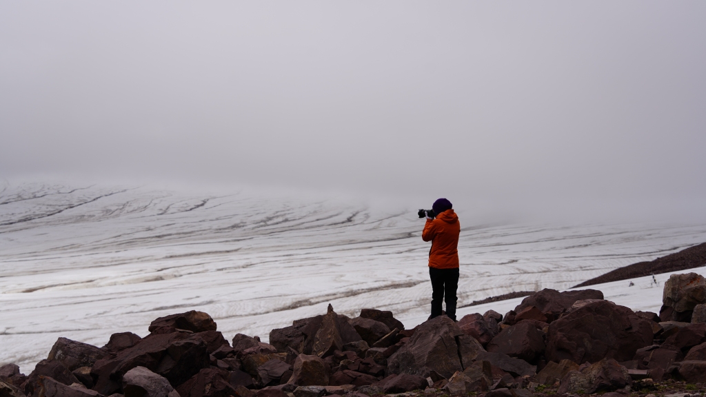 澎湃新闻记者到达冬克玛底冰川脚下进行采访
