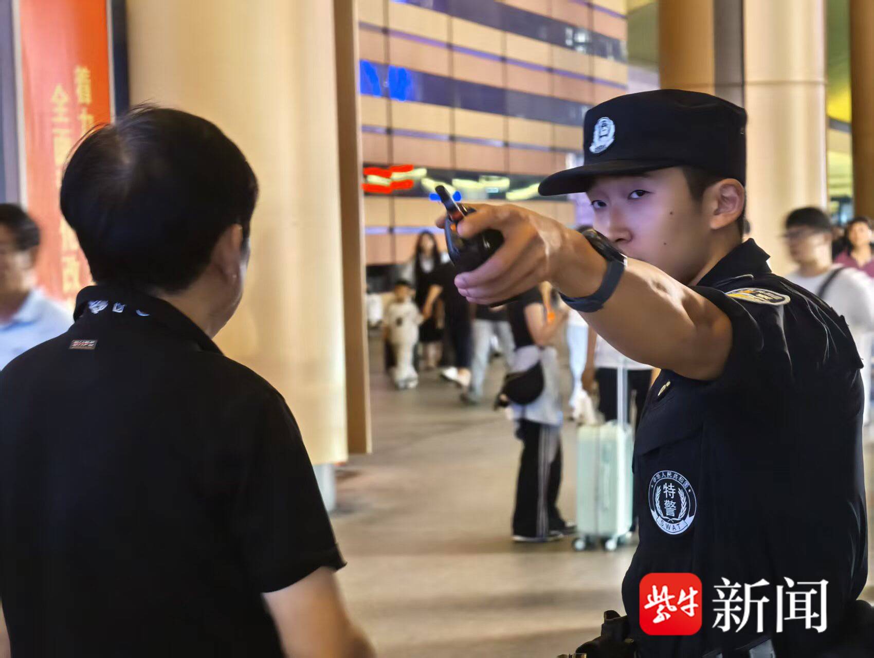 “双节”期间的南京南站,人流如织。仇子禹和队友以严整的战斗队形穿梭在人群中,目光如雷达般扫视四方:安检机前旅客的神态、候车椅上的行李、通道口涌动的人流……每一个细节都不放过。与主要负责治安管理、服务旅客的车站民警不同,铁路特警是精锐的机动力量,他们的职责是“武装震慑、应急处突”。