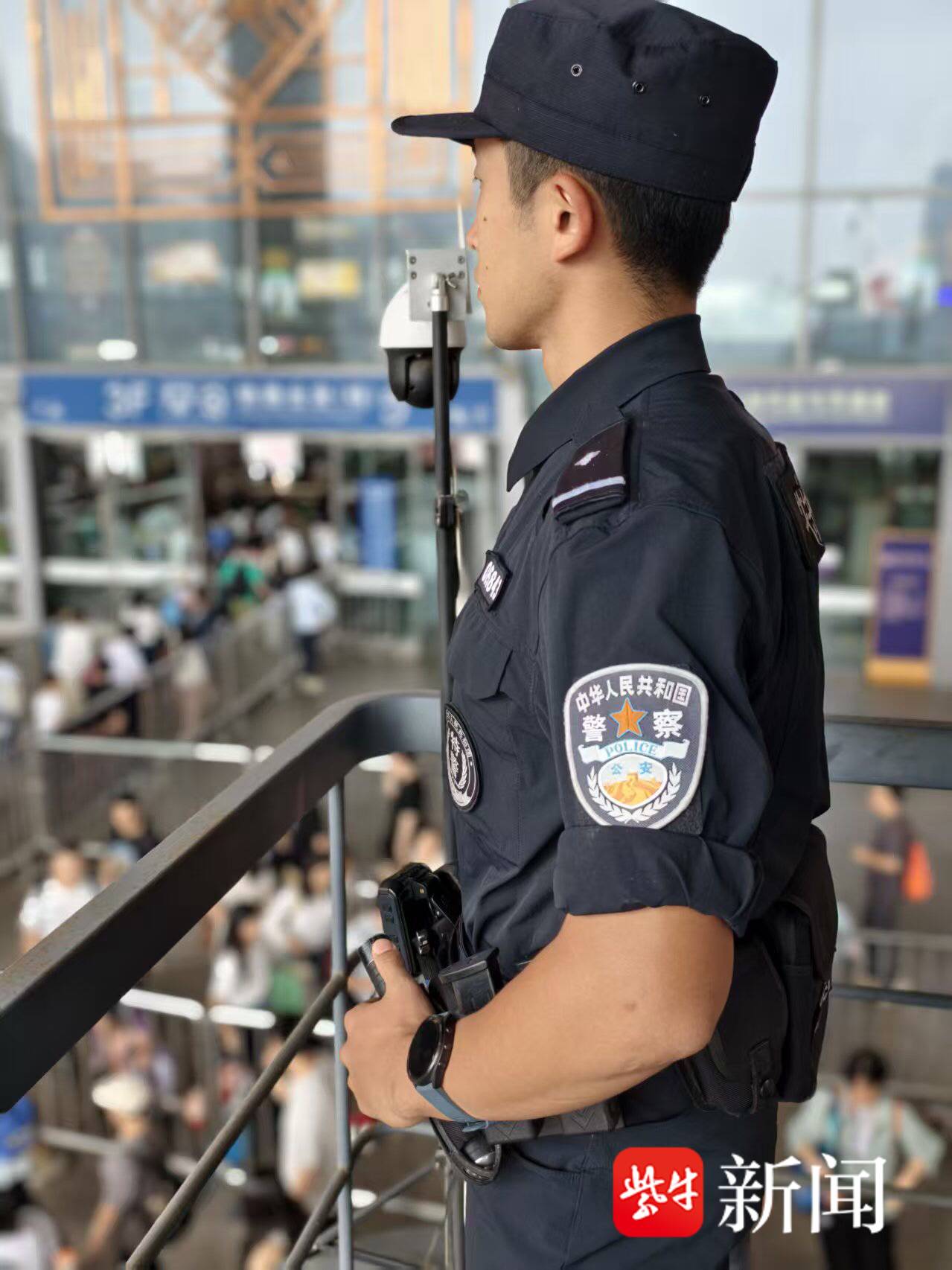 扬子晚报网10月7日讯(通讯员 谭欣怡 记者 梅建明)晨光初露,南京南站已迎来熙攘的旅客流。南京铁路公安处特警支队特警仇子禹和队友张文哲点来到南京南站三楼进站口前的岗位值勤点,一丝不苟地整理装备,战术背心、92G手枪、执法记录仪、对讲机、强光手电……每一件装备的确认,都是出于职业本能,更是对旅客安全的承诺。这是国庆长假第四天,仇子禹如常清晨到岗,开启了他作为车站“处突尖刀”值守巡逻的一天。