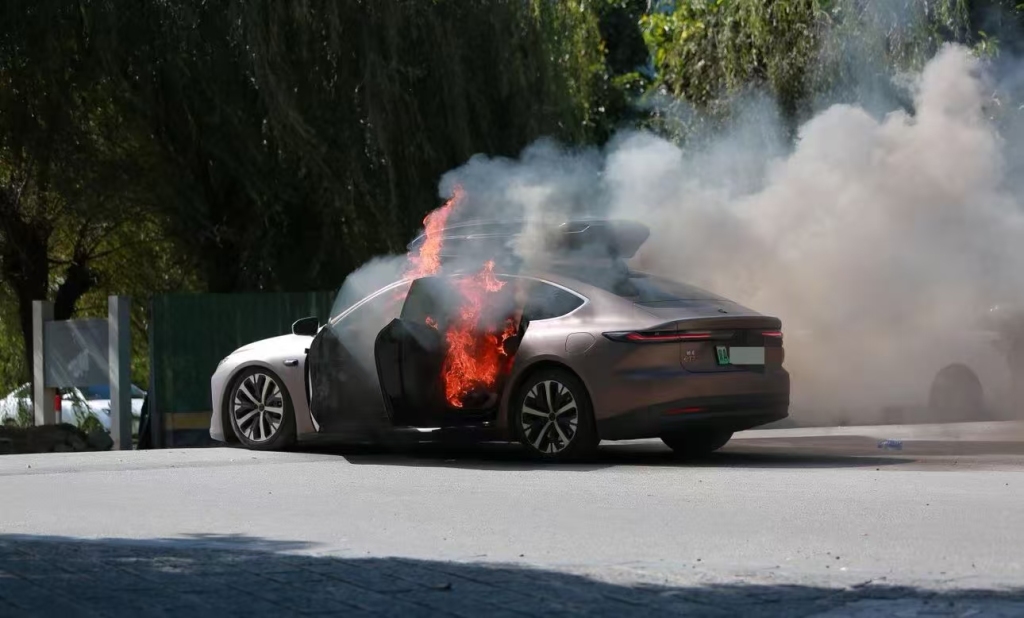 一辆蔚来ET7轿车在大理一景区外起火,一家四口撤离及时无伤亡