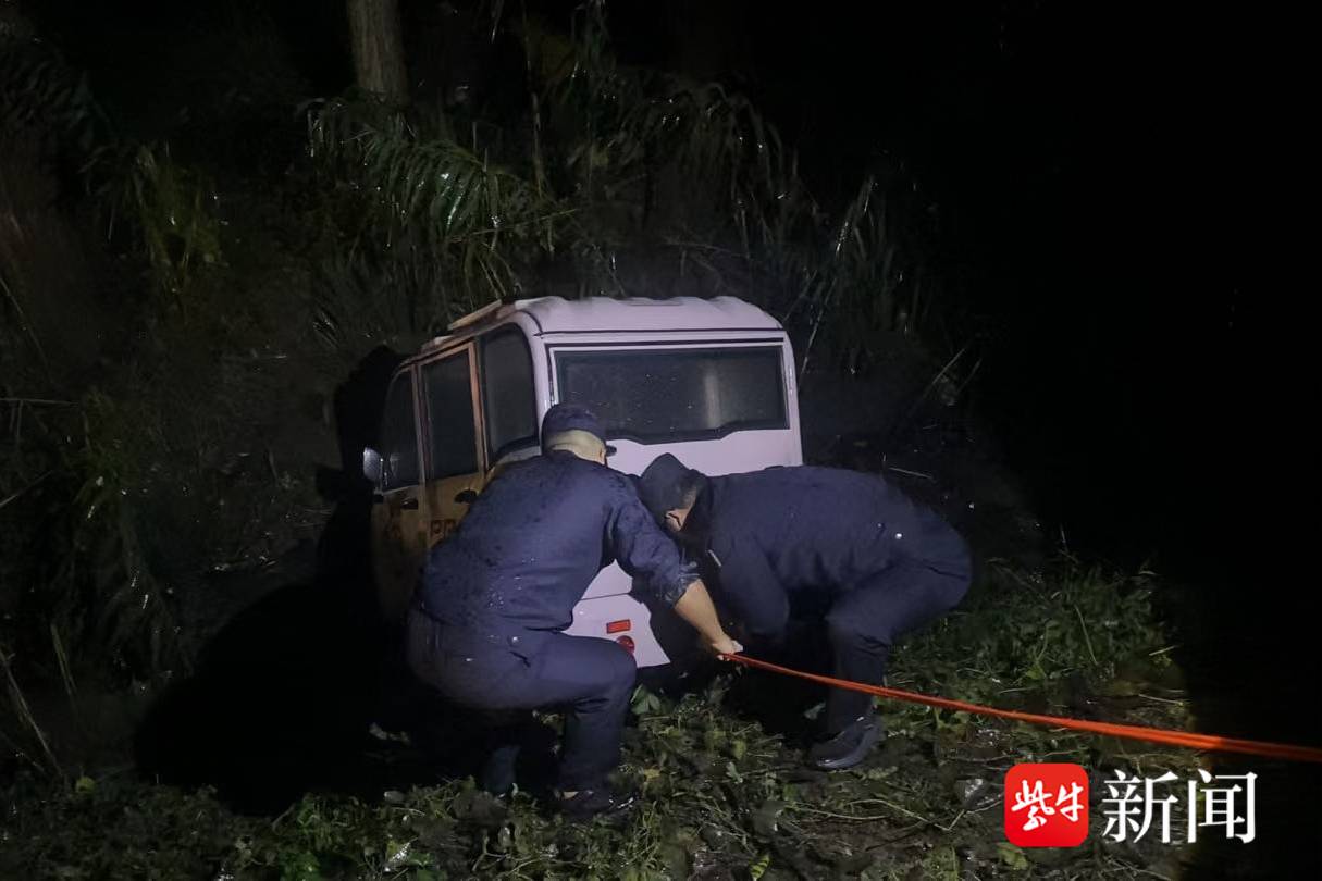 风雨夜老人三轮车坠沟 东海警民合力救援暖人心